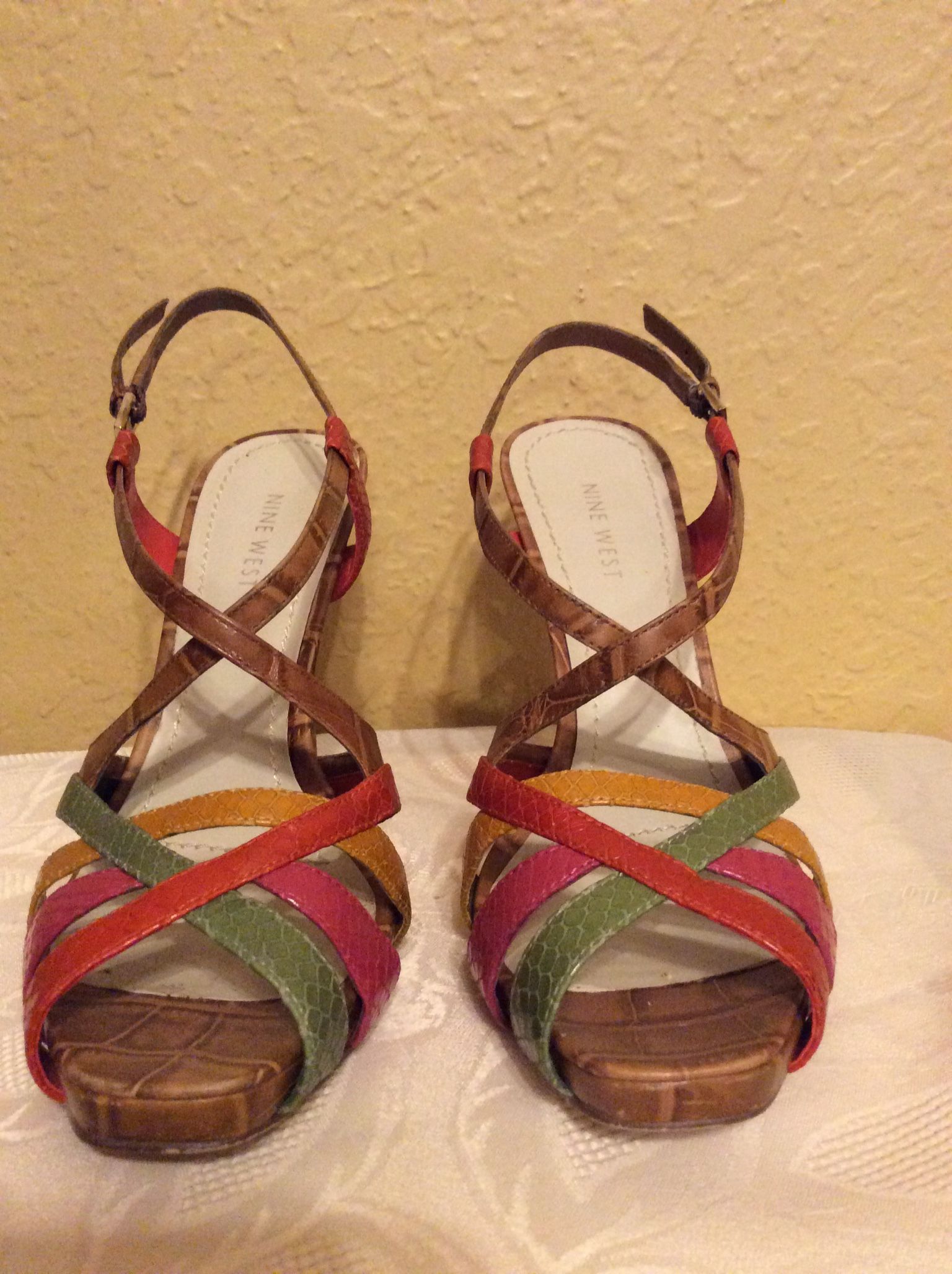 Nine West Jewellite Shoes. Heel is 4.5”, shoe size 7.5 M, multicolored. Preowned Condition