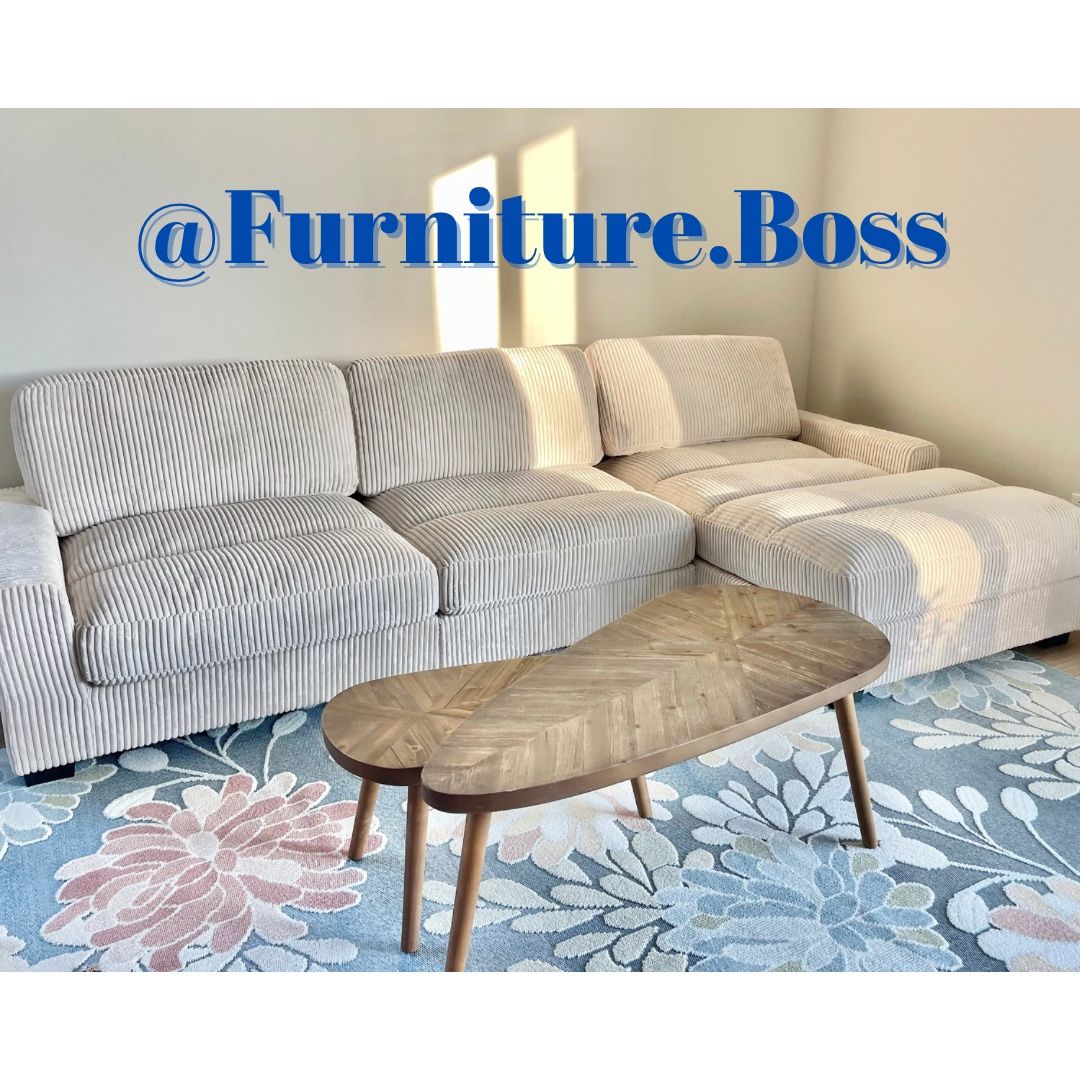 Sectional Sofa with Chaise - Soft Beige Corduroy Fabric