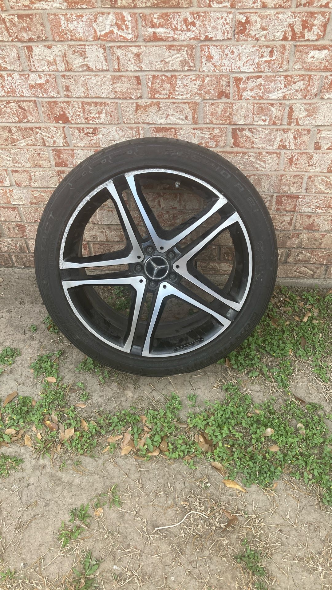 Mercedes rim with a good tire with plenty of tread no damage to the tire in good shape. Still got a lot of life left in it.