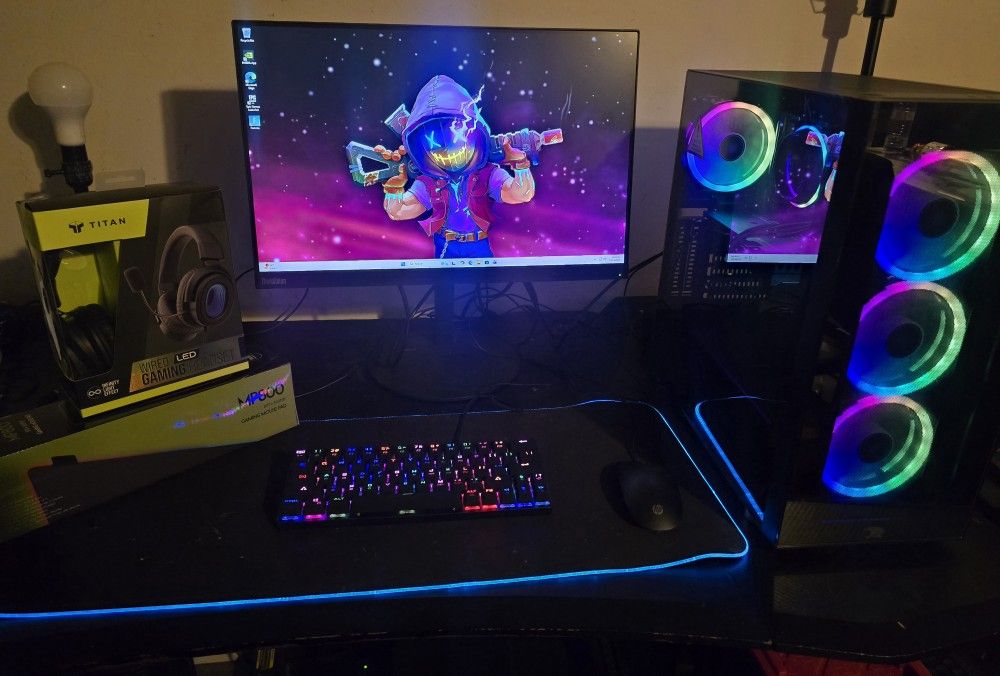Windows 11, Intel i7- 6700 @ 3.40GHz, 16GB Ram, 500GB SSD w/2TB Rollover Storage Space, Nvidia GeForce GTX 1660 Super Graphics Card, RGB Tempered Glass Gaming Case, RGB 60% Mechanical Gaming Keyboard, Mouse, Gaming Headsets, RGB Gaming Mouse Pad, WIFI Adapter, 24" Frameless Monitor and all cables. Plays the following games and more; Warzone GTA-Fivem Fortnite Valorant APEX Minecraft Roblox Rainbow Overwatch LOL CSGO Destiny Mavel Rivals...etc. All customers are welcome to come test system out before purchasing it.