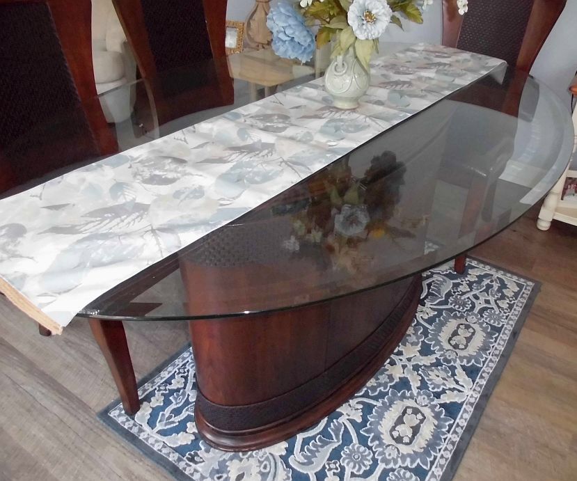 ๐ฆ ๐Perfect for your holiday gathering! ๐ฆ ๐ Dining Room Set - four large seat chairs and glass top table. Table setting can accommodate 6 easily. Measurements: 30 inches (approx.) from floor to the table top for height. Top of the table from end to end down the center is approximately 69inches long. Table top glass is approximately 45in wide. $800 or best offer cash and carry only. No delivery available.