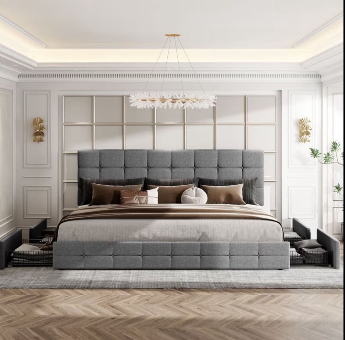 Brand new in the box,gray ,Queen size ,easy to pick up,box size :6.3f tall 2f wide 2f deep