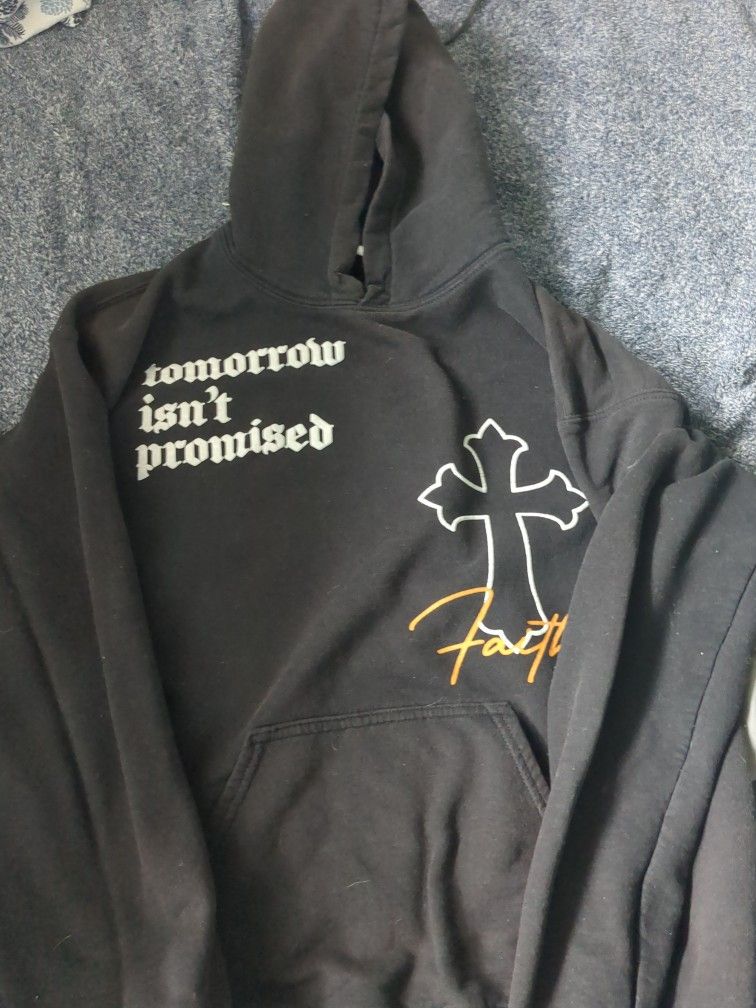 Size medium 50 percent polyester 50 percent cotton Some sun bleaching on the hood and upper half-nothing crazy DM for more pics Good condition no stains No drawstring