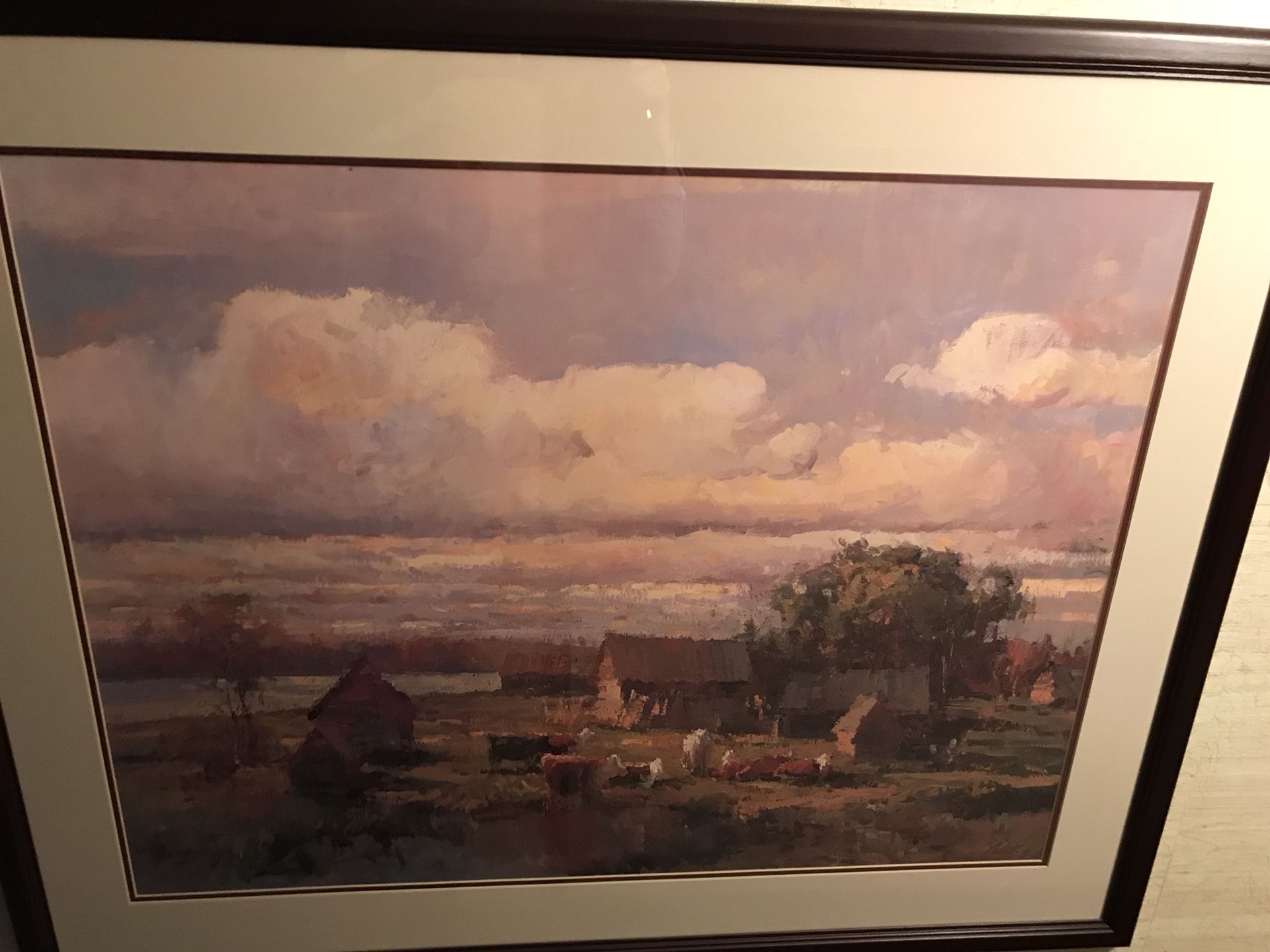 39.5” x 32” picture of farm with cows