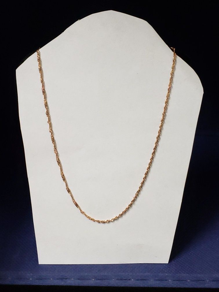 10kt Rosegold Singapore design chain Weight 1.64gms Width 1.4mm Length 22 inches Different lengths are available Please check the images to assume the size compared to dime 100 % Authentic 10kt gold chain