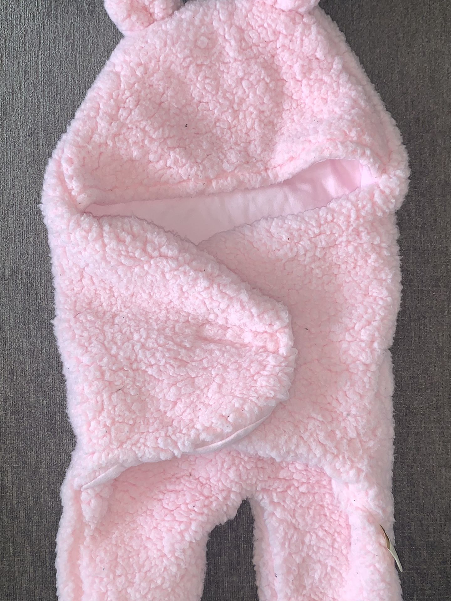 Light pink fuzzy Sherpa baby onesie with cute little ears and a tail! Only worn once for pictures. Fits newborn-3 month ish.