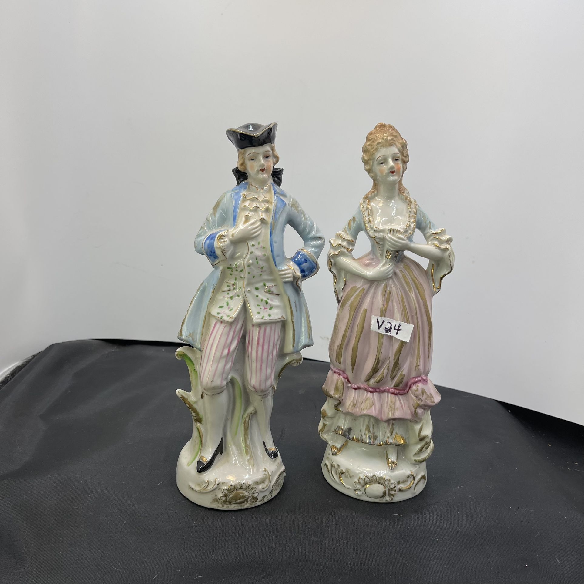 The product is a set of two vintage Victorian porcelain figurines depicting a man and a lady. This collectible sculpture features intricate details and classic Victorian style, showcasing a couple in a timeless and elegant manner. Made of delicate porcelain material, these figurines are perfect for adding a touch of nostalgia and sophistication to any decor setting. Ideal for collectors or those looking to enhance their home with a piece of Victorian-era charm.