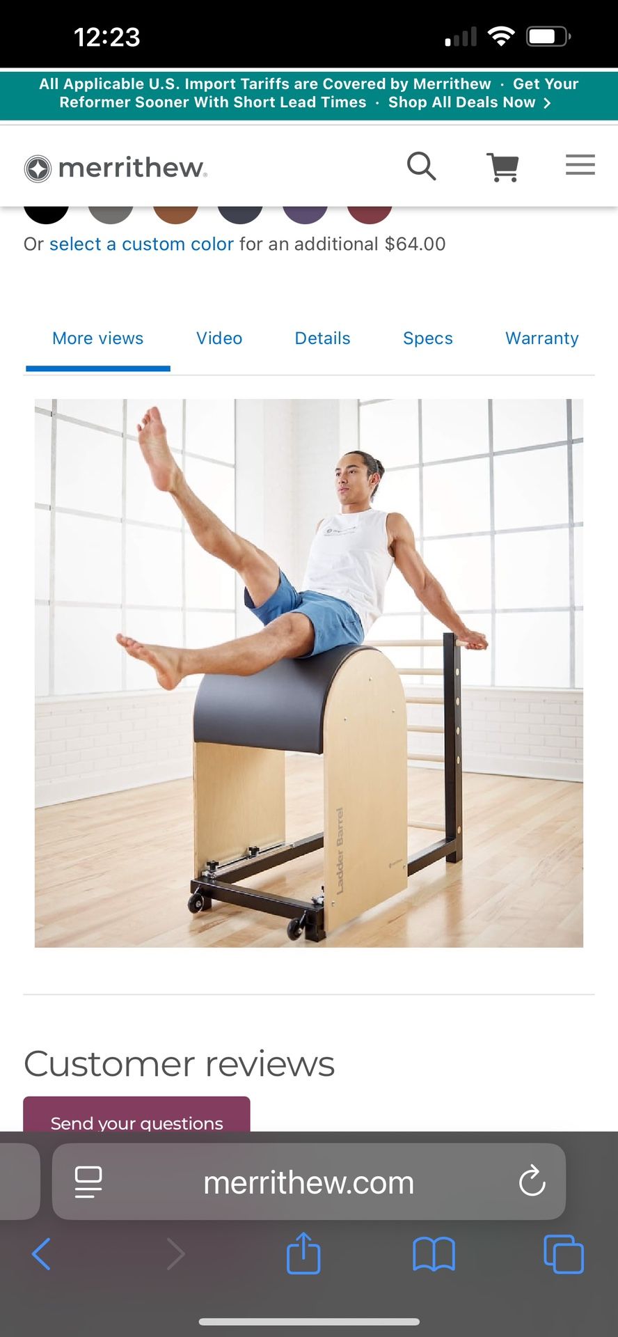 Very good condition. Custom blue color called eclipse. Only wear is on side with decal that reads ladder barrel. I don’t have space to keep this equipment so I need to part with it. I have had for 3 years and it’s barely used. Upholstery doesn’t have any damage. You can own this for less than 1/2 the retail price. Save on shipping. I have a handy guy that can also deliver for additional fee. The Ladder Barrel challenges core stability and strength of Pilates enthusiasts of every level. The surface is ideal for stretching and strengthening exercises and the wooden rungs provide versatility for different users. It also features an adjustable base to accommodate different torso and leg lengths. This piece is designed for serious core conditioning and will allow you and your clients to increase flexibility and mobility.