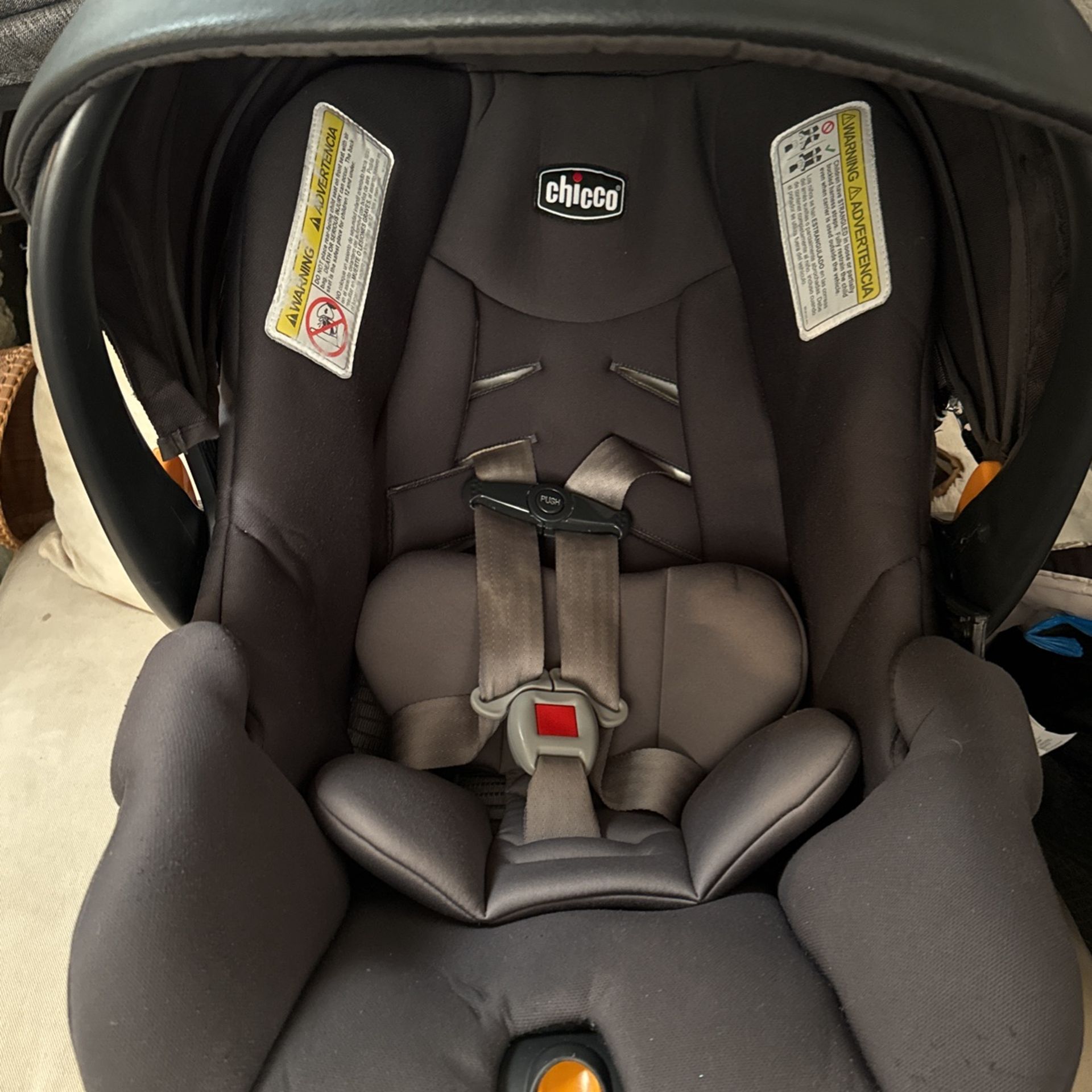 Excellent condition, no accidents, expires Oct. 2024 • Stage: Rear Facing Harness (4-30 pounds) • Includes: Car seat base, Ergonomic newborn head and body support, Machine washable fabrics • Safety Features: SuperCinch LATCH installation, Side impact protection, 5-point harness, EPS Energy absorbing foam • Compatible with: All Chicco strollers & most other brands with approved adaptor • Premium zip features: Zip-open boot, Extendable canopy with zip-open mesh, Quick-remove seat pad • Easiest to install correctly: ReclineSure leveling foot, RideRight bubble levels, SuperCinch LATCH tightener Retails $250