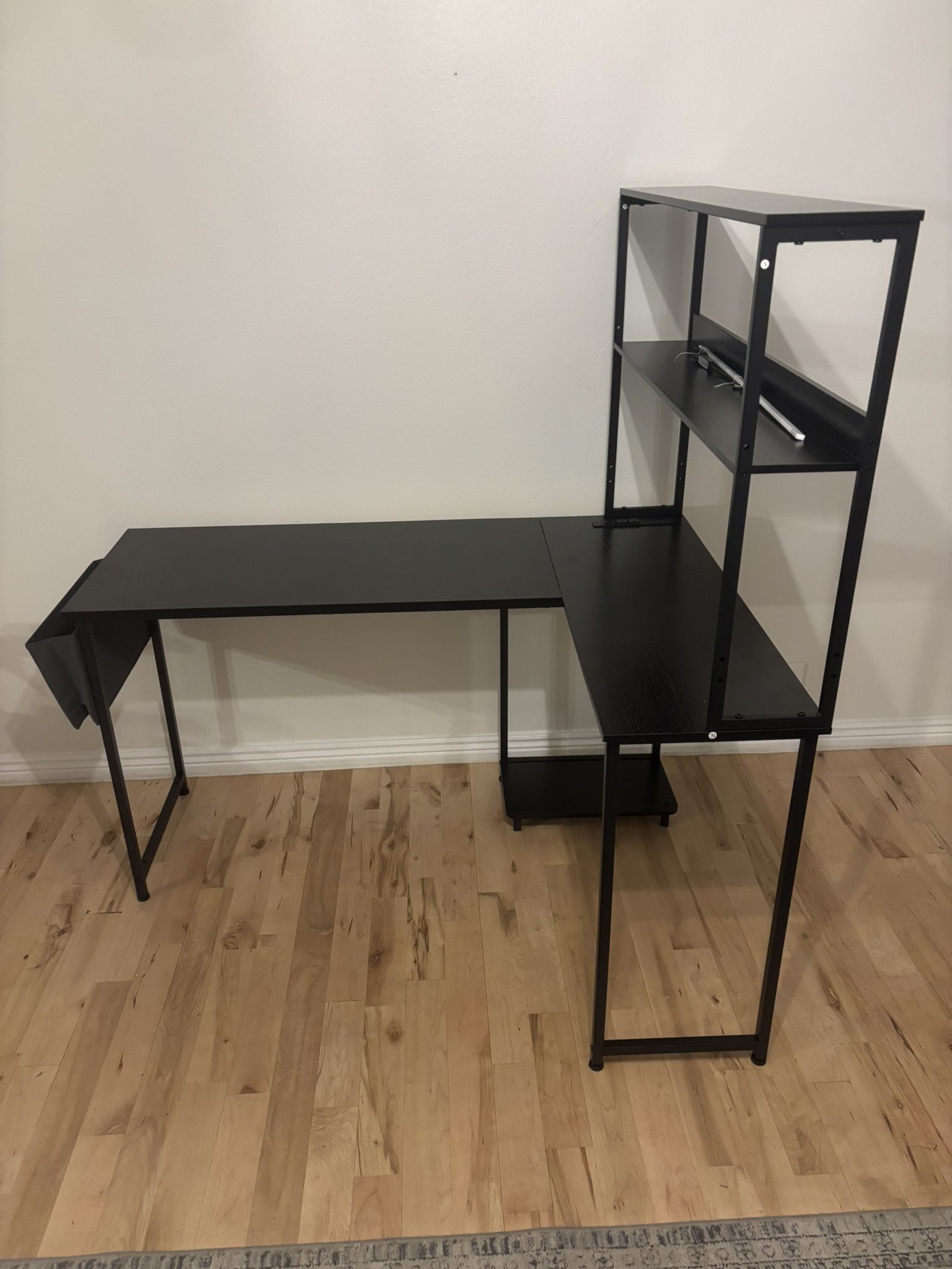 $75 new Black Office L- Desk With 2 Shelves, Side Storage, And Outlets 19” x 51” one side 14” x 39” I’m at about university and Lindsay in Mesa