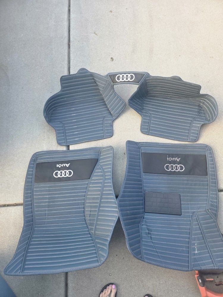 These are in really great condition The drivers mat has one little tear up on the top kind of behind the pedal so you can't see it. The embroidery that is white with the Audi symbol needs to be washed but other than that they're perfect. Please text (contact info removed) do not call I won't answer if I don't recognize the number