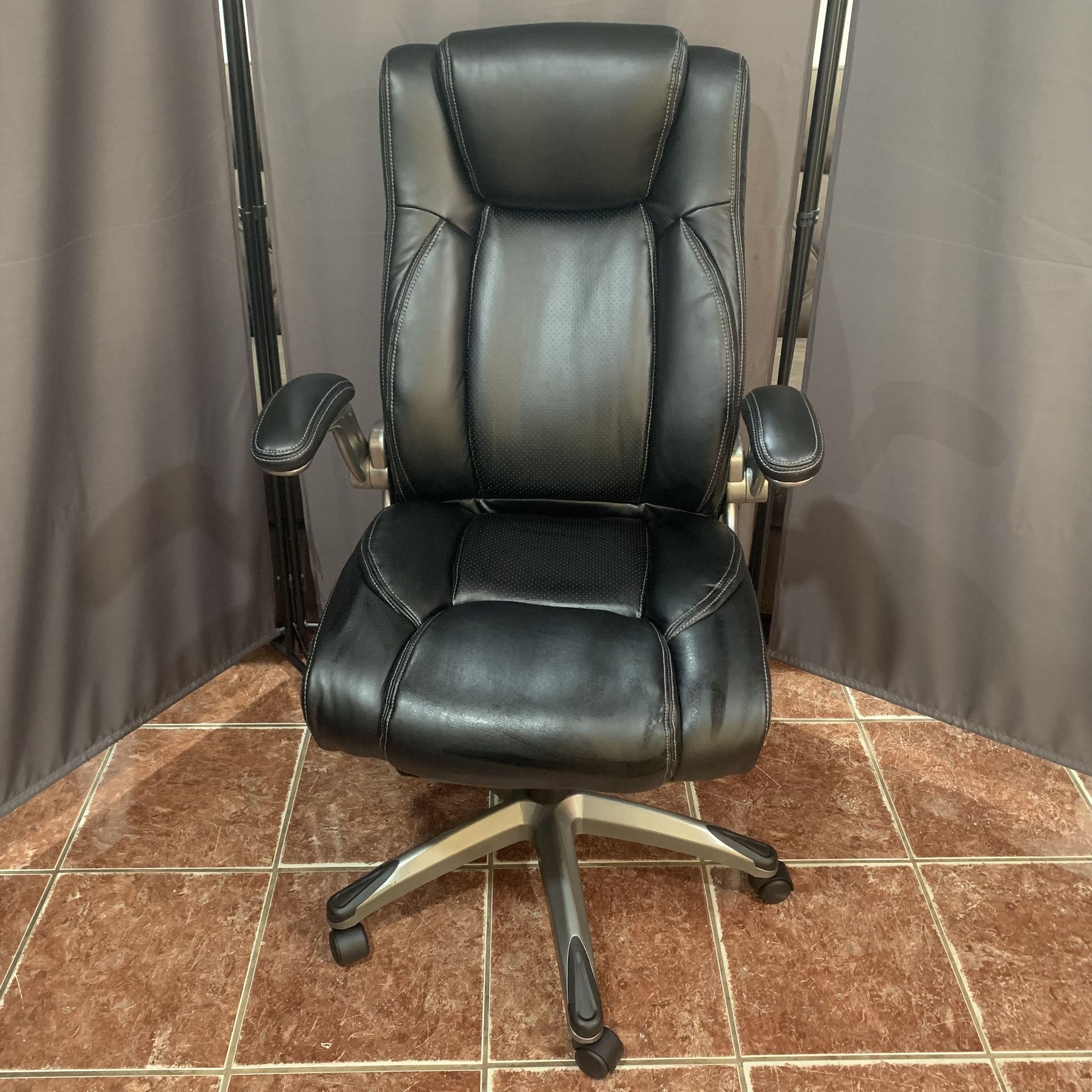 Black office chair in great shape Has some scratches other then that all good