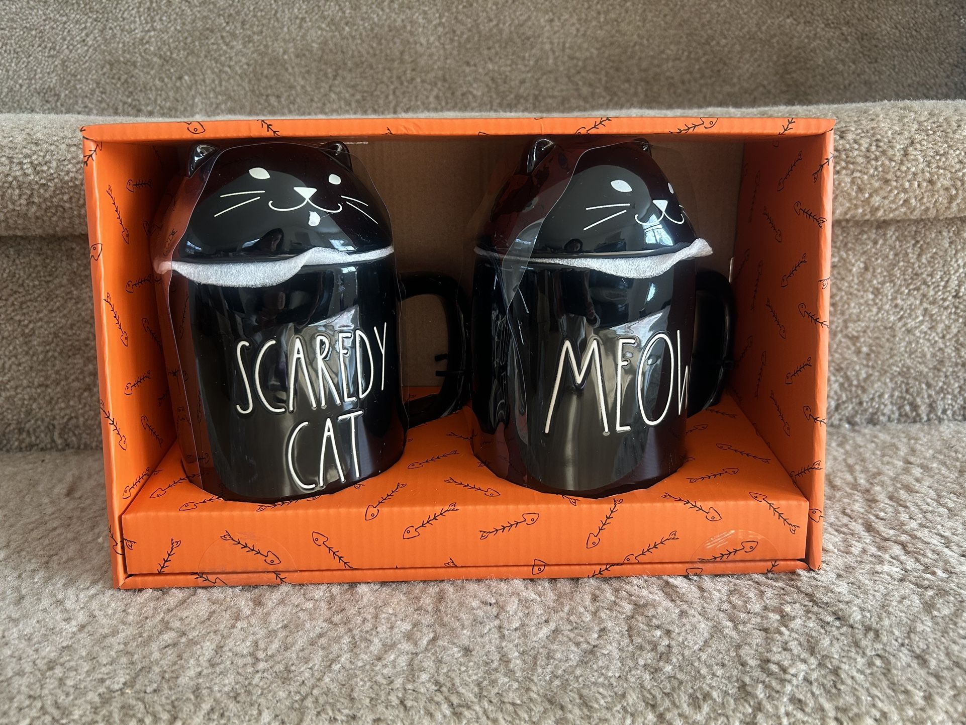 Rae Dunn Black Cat Mugs - Scaredy Cat & Meow Brand New