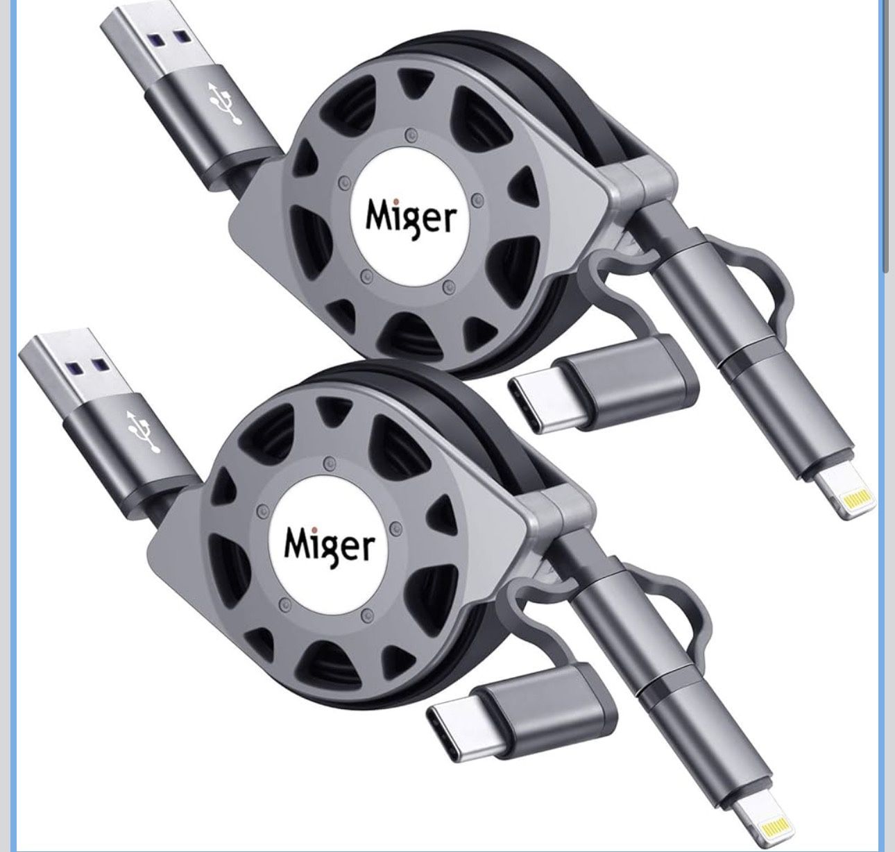 🎈WHOLESALE IS AVAILABLE 🎈 🔋【One for All】: 3-in-1 3.3Ft/1M Multi Charging Cable,Chargers for Multiple Devices with the Interchangeable,Built-in Micro USB,Type C,and Lightning Connector.(Lightning/USB C/Micro USB Connectors Support Data Transfer, 480Mbps) 🔋【Fast Charging and Data Sync】: The Retractable USB Charger Cord Maximum Total Output Current Can be up to 3A (Total, not Each End), Charge Faster Than Most 3-in-1 Fast Phone Charger and Work Better for Tablets and Quick Charge Devices. 🔋【Length Settings & Retractable】: Retractable Phone USB Charger Cord can Extend from 0.35ft to 3.3ft and Adapts to Different Daily Situations.Adjustable Length Prevents Charging Cables that are too Short to Charge When you are in the Coffee Shop or Meeting Room. With a Retractable Design, You Just Pull Out Both Ends of the Cable at the Same Time,it will Automatically Retract to the Original Position.Easy to Place in Your Handbag, Laptop Bag,or Pocket.Perfect Choice for you in School, at Home, at Work and for Travel. 🔋【Super Compatibility】: Multi charging cable for Lightning/USB C/Micro USB port smartphones/tablets including iPhone 17 Air 16 15 14 Plus/17 16 15 14 13 12 11 Pro Max/17 16 15 14 13 12 11 Pro/17 16 15 14 13 12 11/ 14 13 12 Mini/ SE,/ XS Max/ XS/ XR/ X/ 8 Plus/ 8/ 7 Plus/ 7/ 6s Plus/ 6s/ 6 Plus/ 6/ 5S/ 5, iPad, iPod touch nano, Samsung Galaxy, Huawei, LG, Nexus, OnePlus, HTC, Sony, Google Pixel and more. 🔋【Warranty】: Miger 2Pack 3 in 1 Retractable Multi Fast Charging Cable,Travel Charger for Multiple Devices