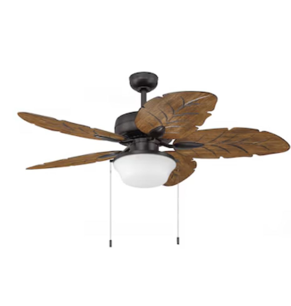 Harbor Breeze Waveport 52-in Aged Bronze with Brown Blades Covered Outdoor Downrod or Flush Mount Ceiling Fan With Light 5 -Blade