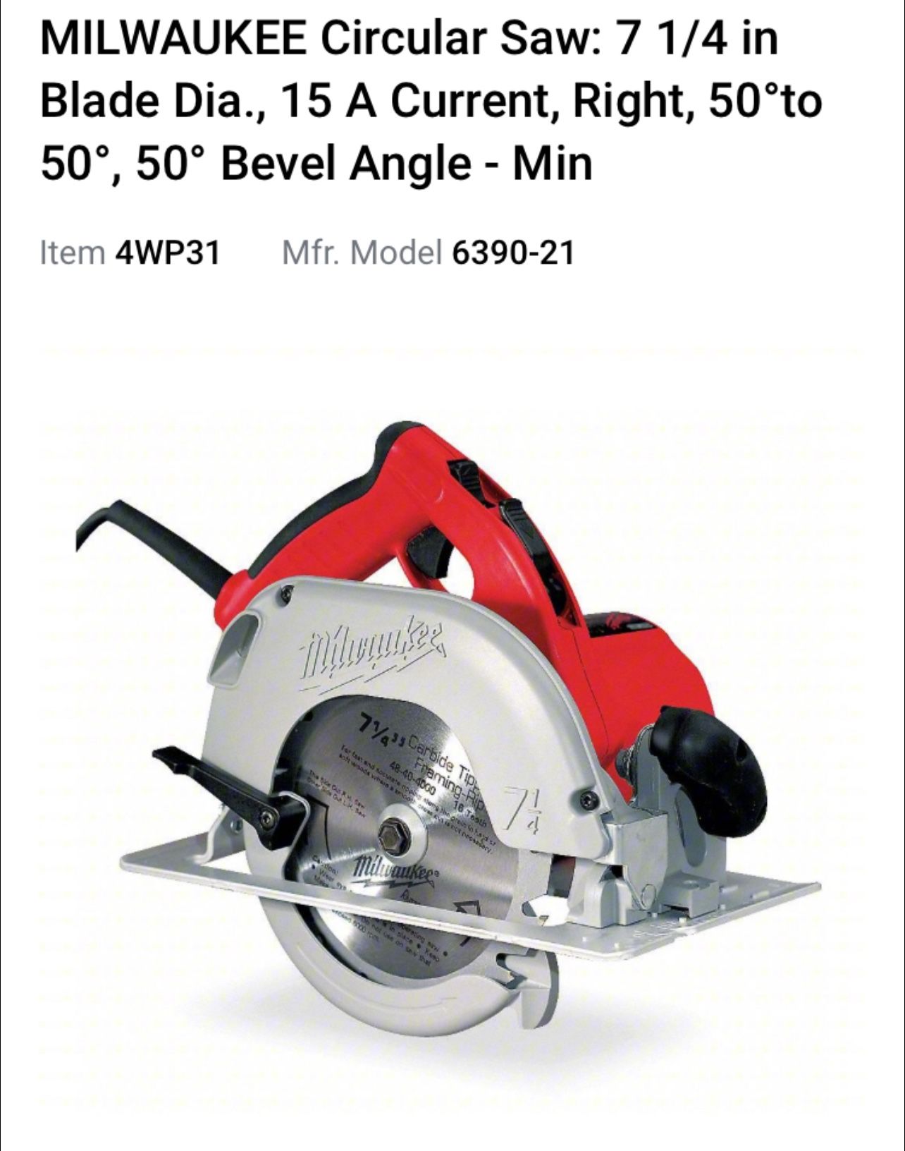 MILWAUKEE Circular Saw: 7 1/4 in Blade