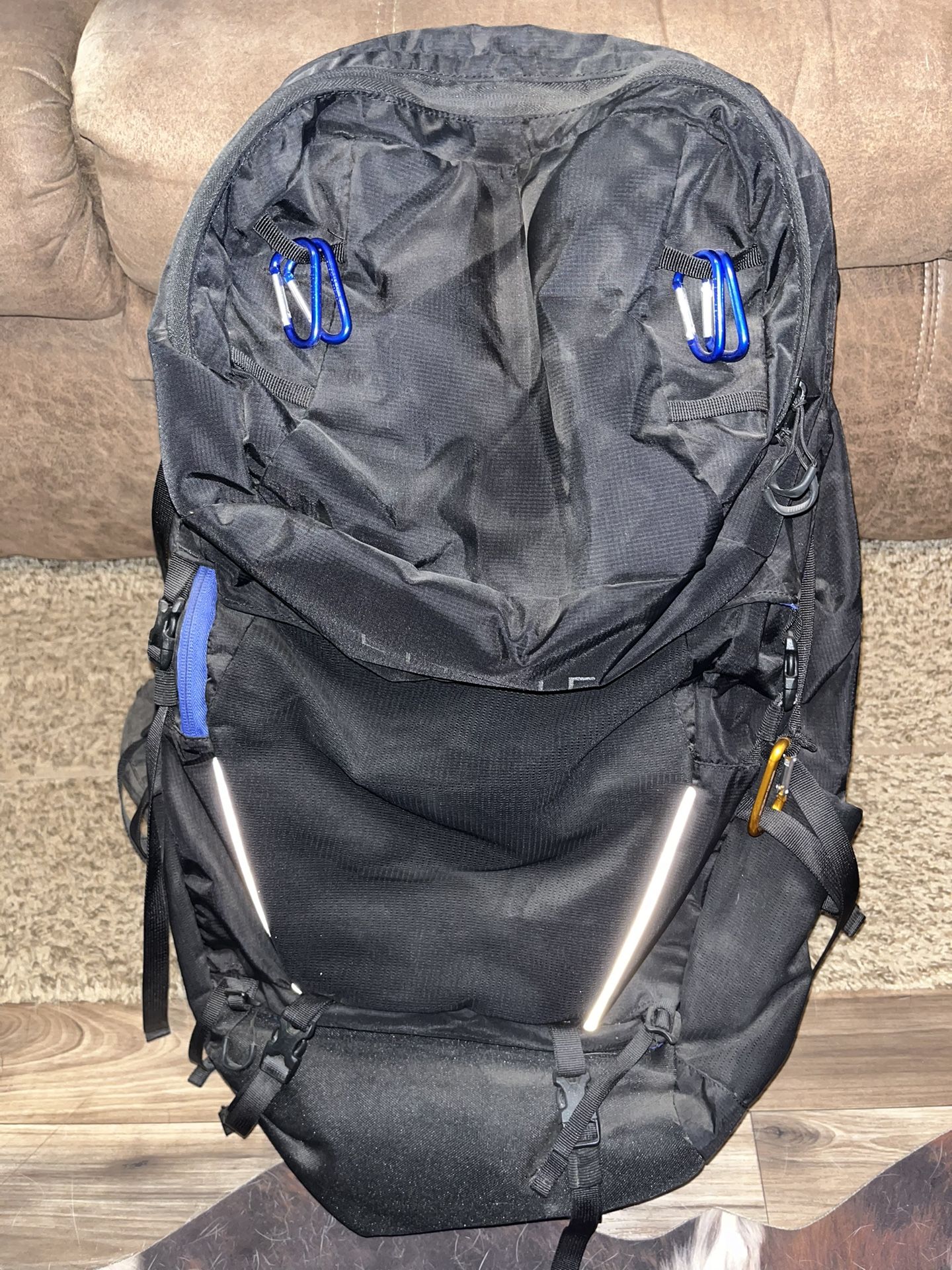 Very nice backpacking pack. Has a ton of storage for everything you would need to camp for several nights, including sleeping bags, small tent, food, etc. Brand new. Purchased for getting into the hobby but never ended up going. Has a built in rain cover for bag and overhead. Very nice bag. Asking $75