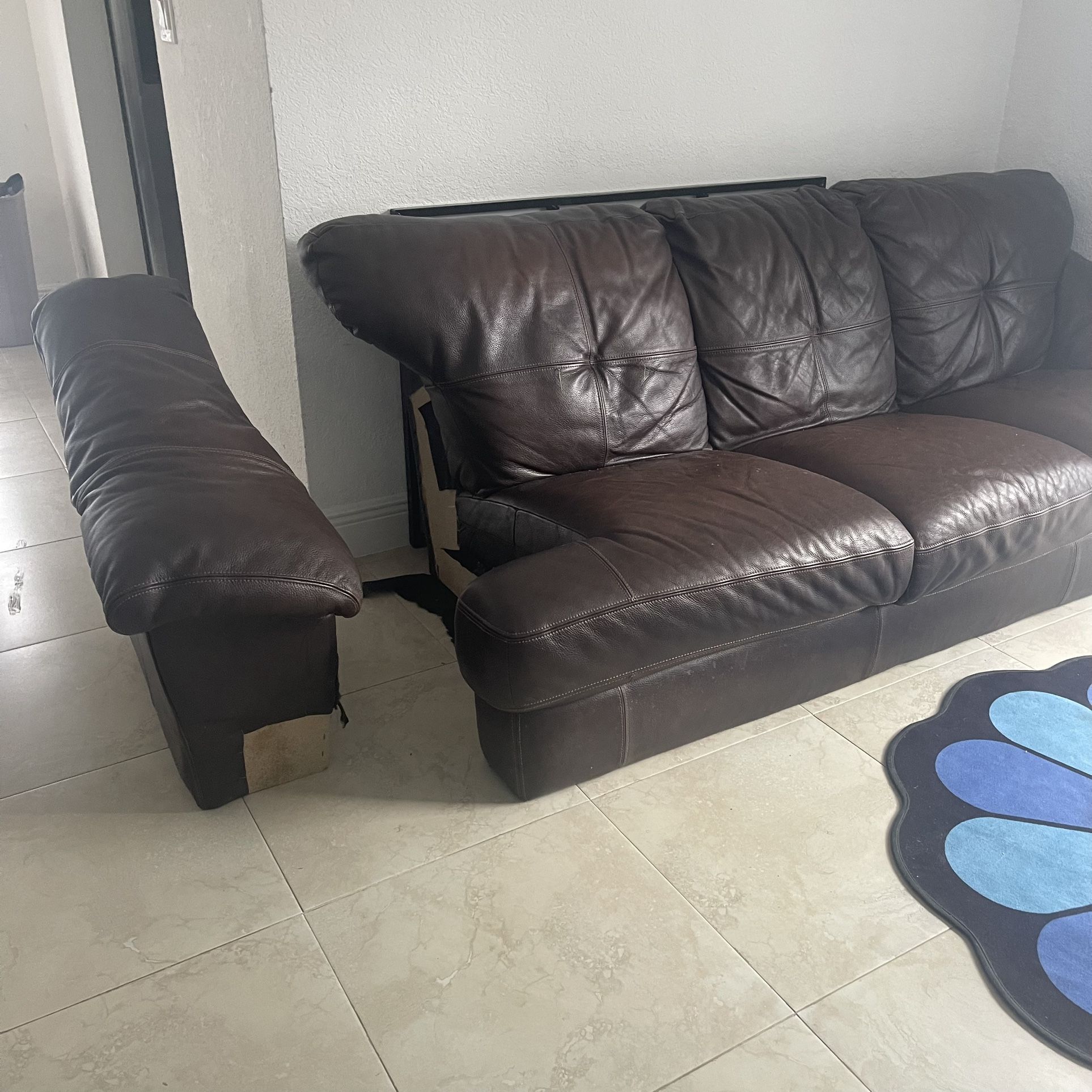 very comfy, broken arm rest , still works when pushed against a wall or maybe you could nail it back together (comes as is), used until we recently bought a new one also have a smaller one (not pictured) posting is for the pair or one of them , the other has an arm rest that is slowly breaking off as well