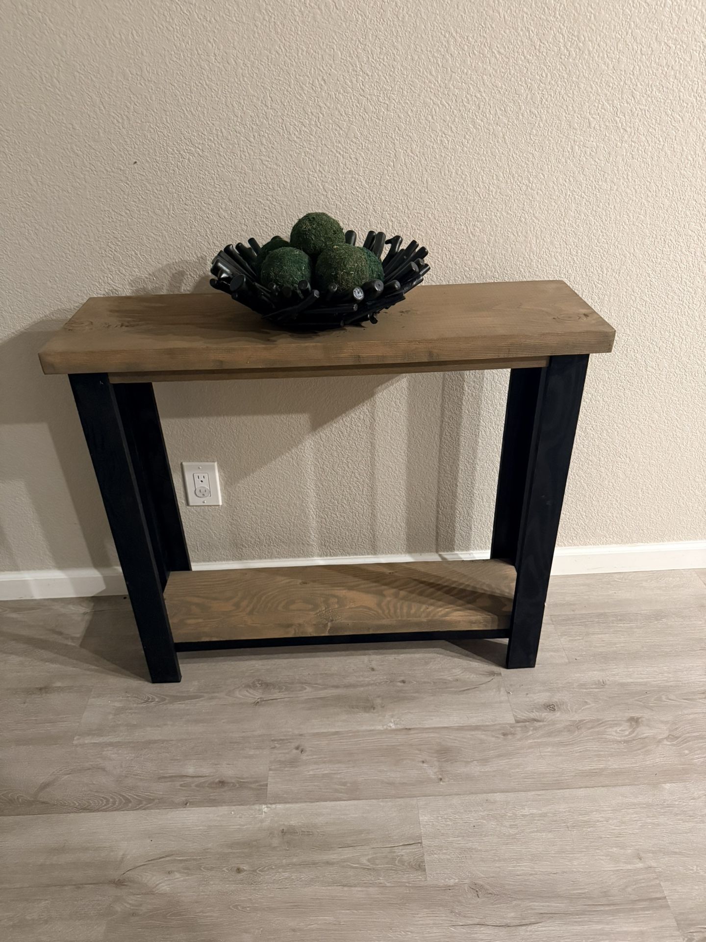 Brand new I literally just bought it and realized it was too small but it’s really nice. Solid wood, nice and sturdy.