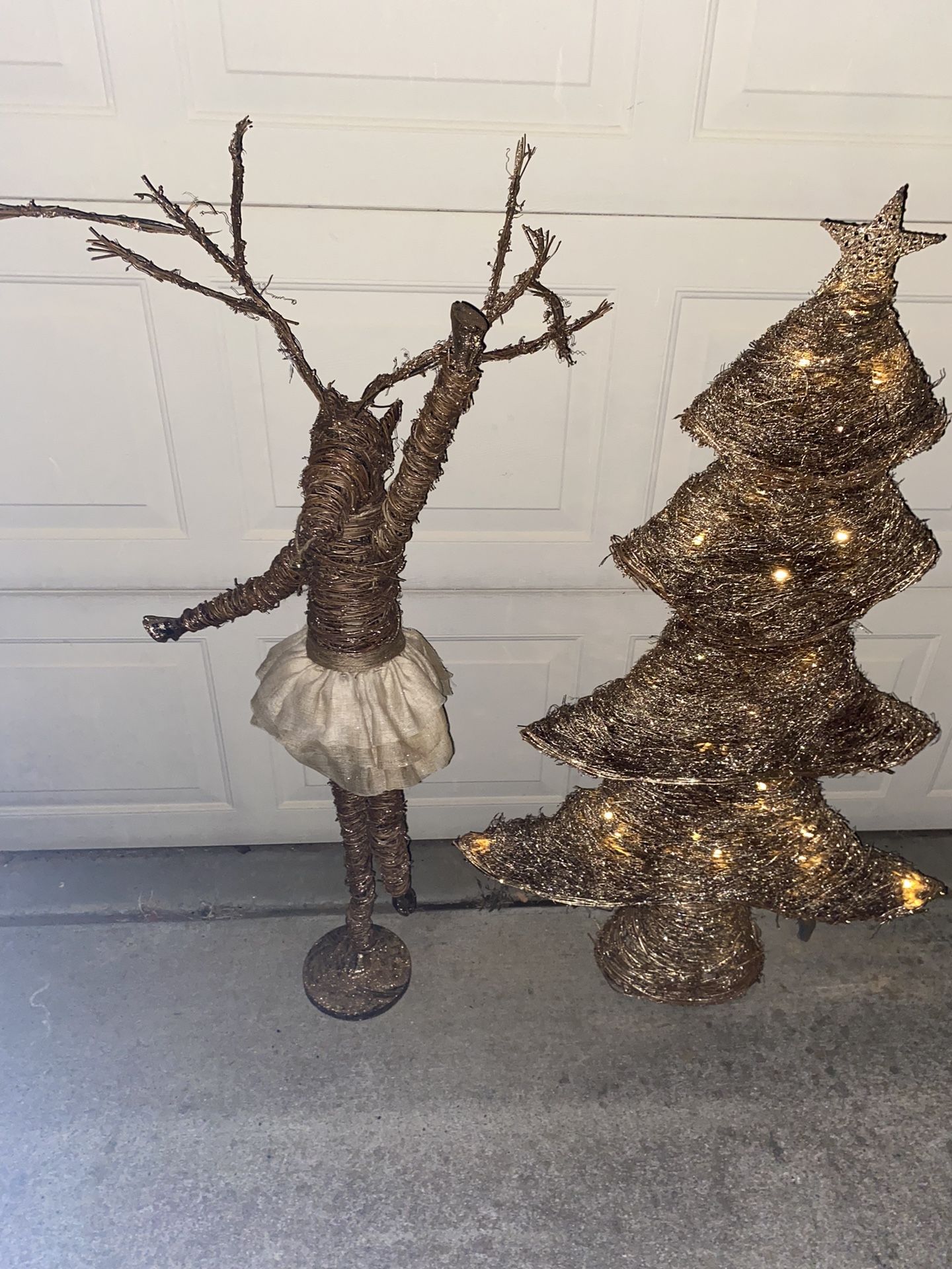 Christmas tree and reindeer Christmas tree lights up . About 4 1/2 feet tall.