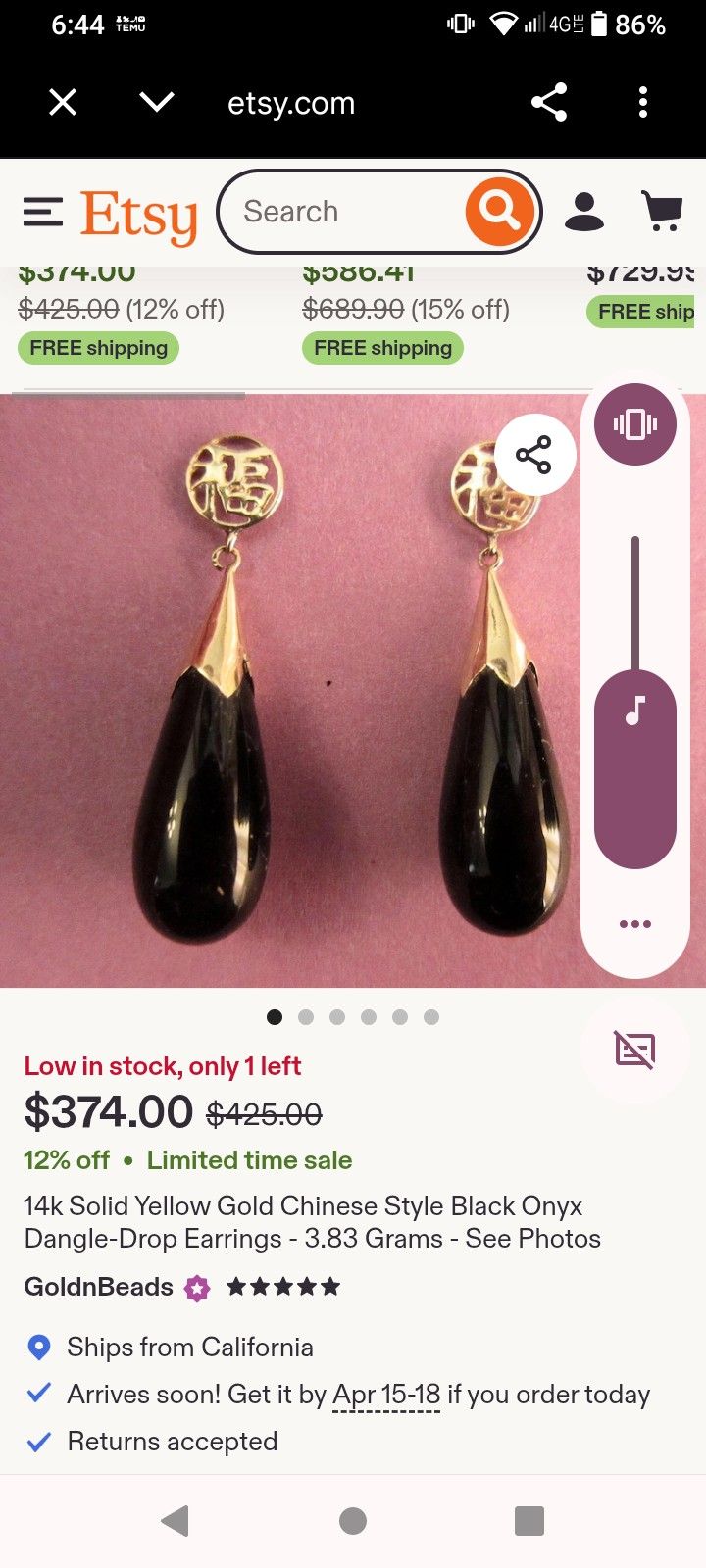 14 Karat Gold Black Onyx Earrings Selling For $150