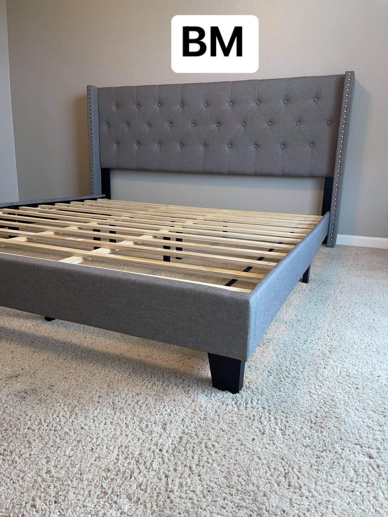 Grey Fabric Linen Platform Bed Frame King Size