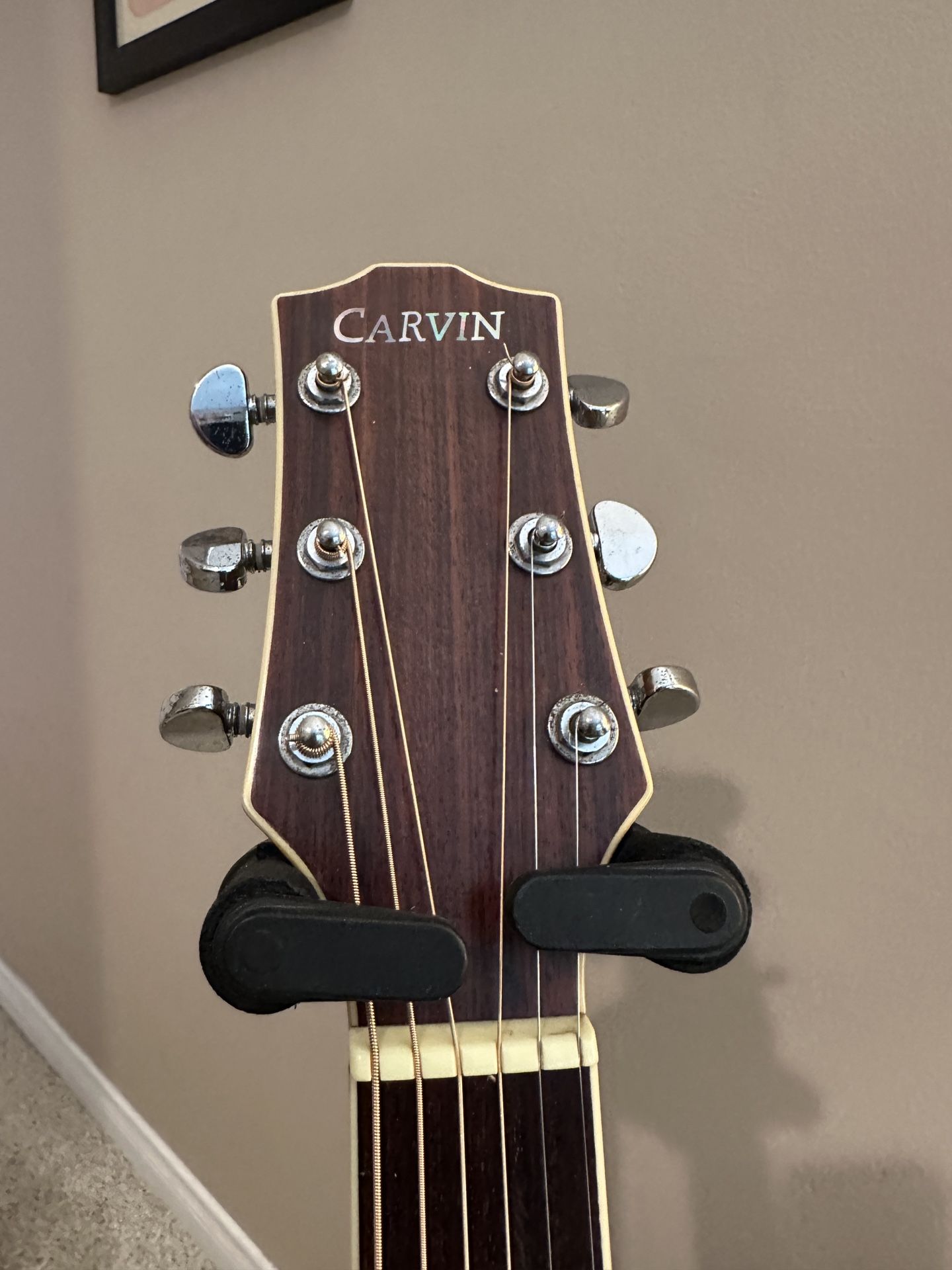 CARVIN Colbalt 750 in very nice condition. Cleaned, adjusted and set up with new MARTIN Marquis silked phosphor bronze Strings Beautiful AA Spruce Top Very clean Mahogany Body Smooth and fast Satin Finish Neck Cutaway Body Fishman Matrix Pickup Prefix Plus