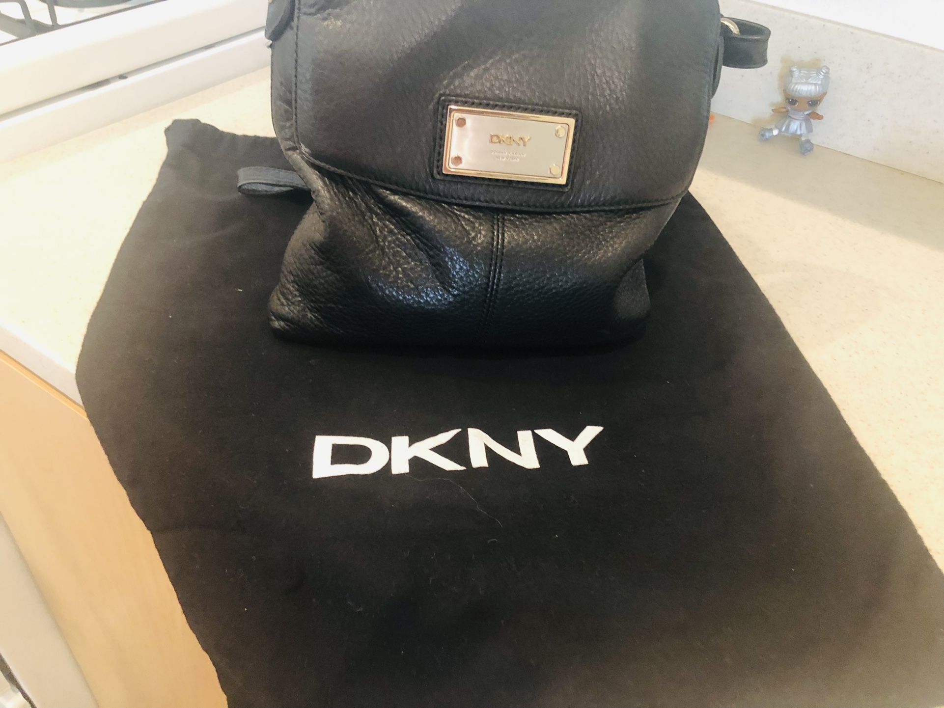 Like New DKNY black leather crossbody bag. Includes dustbag. No damage. Located in Boyle Heights off of 1st Street & Soto. No Delivery