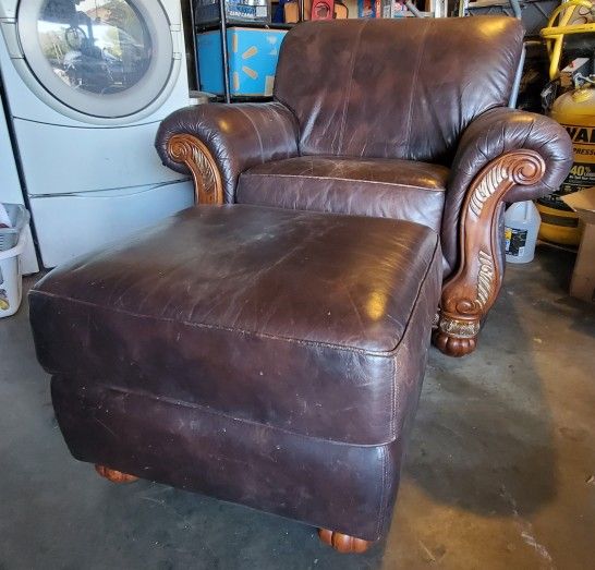 Leather Love Seat With Ottoman