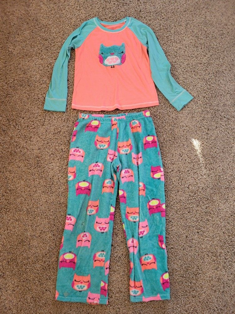Girls 10-12 owl fleece pajamas peach/teal 2piece, EUC Lot U Pick up 5 miles west of Janesville Can meet westside Janesville