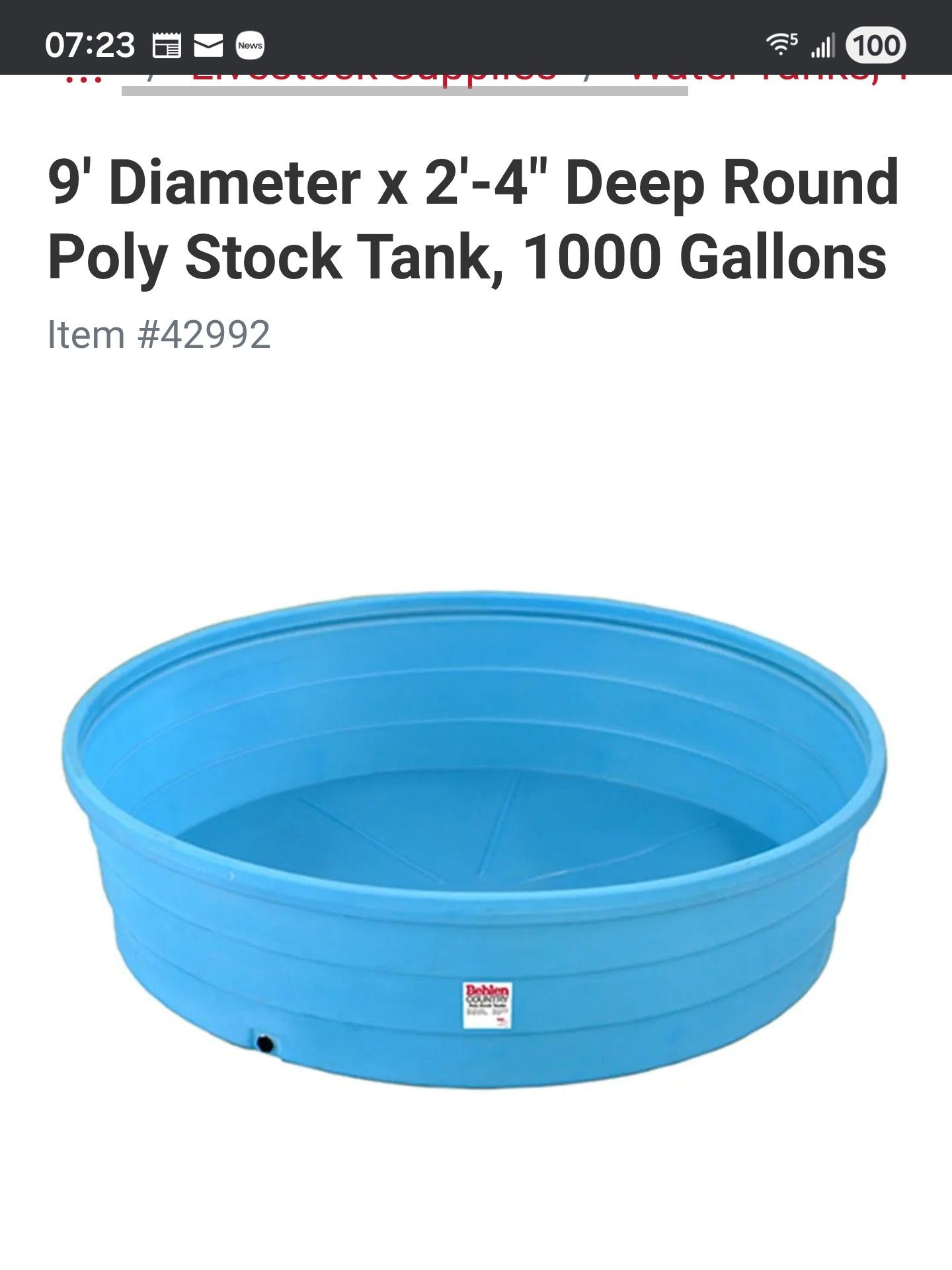 Poly stock tank for livestock