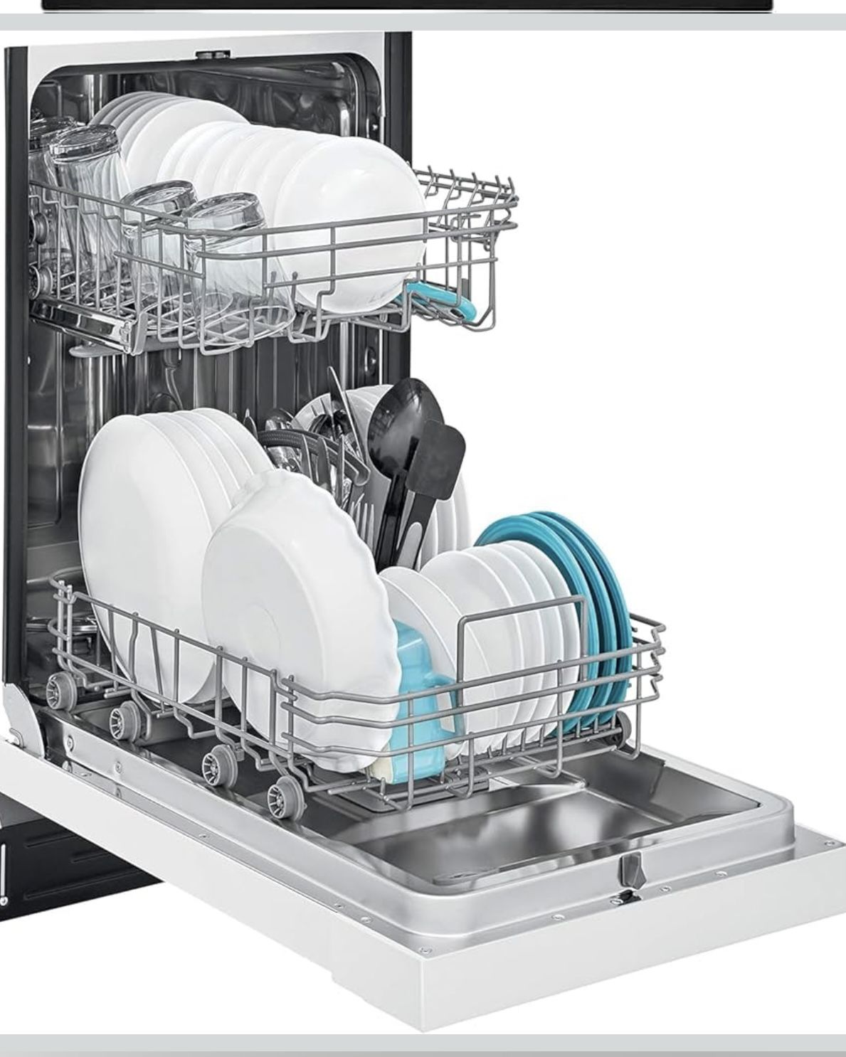 Brand new - still in original box Please note only 18” wide White front PLACE SETTINGS: 8 place settings of dishes. Top cutlery rack and 2 other racks with a large removable cutlery basket. MULTIPLE FUNCTIONS: There are 6 washing programs to choose from- pots & pans, normal wash, china, quick wash, rinse only, and energy saver. Up to 24 hour delay start for you added convenience. DURABLE TUB: The tub is made of stainless steel for better efficiency performance. ENERGY STAR: Low energy consumption according to Energy Star standards. BUILT-IN STYLE: The dimensions of the unit are 22.6"D x 18"W x 32.4"H. This stainless steel built-in dishwasher is ADA-compliant