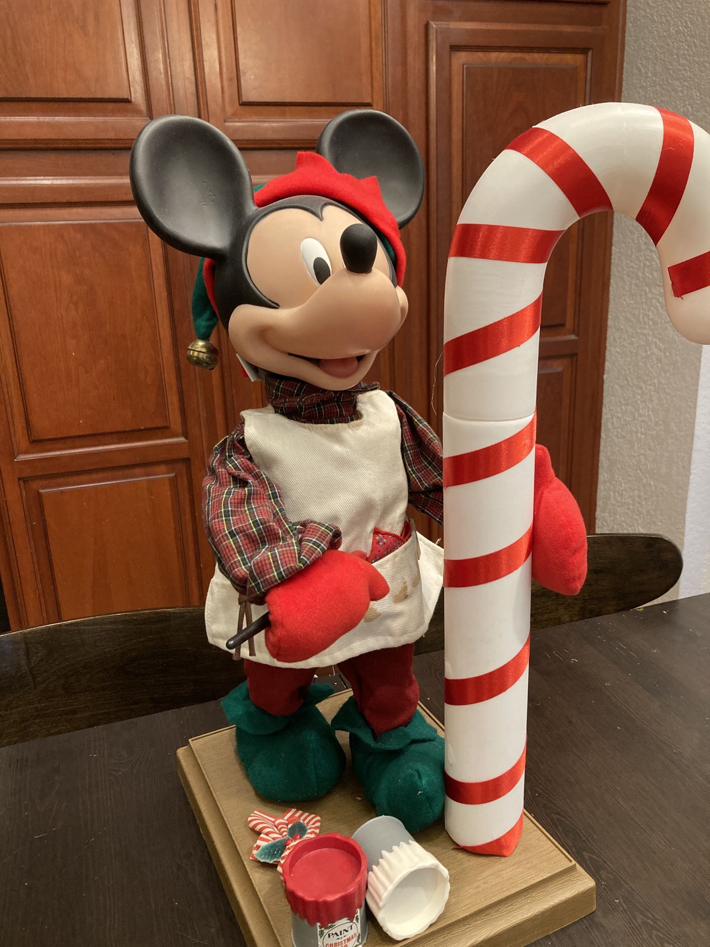 Vintage Mickey Mouse depicted as workshop helper painting a candy cane. Head and Arms move Measures about 18 inches tall Must sell! Make any offer!