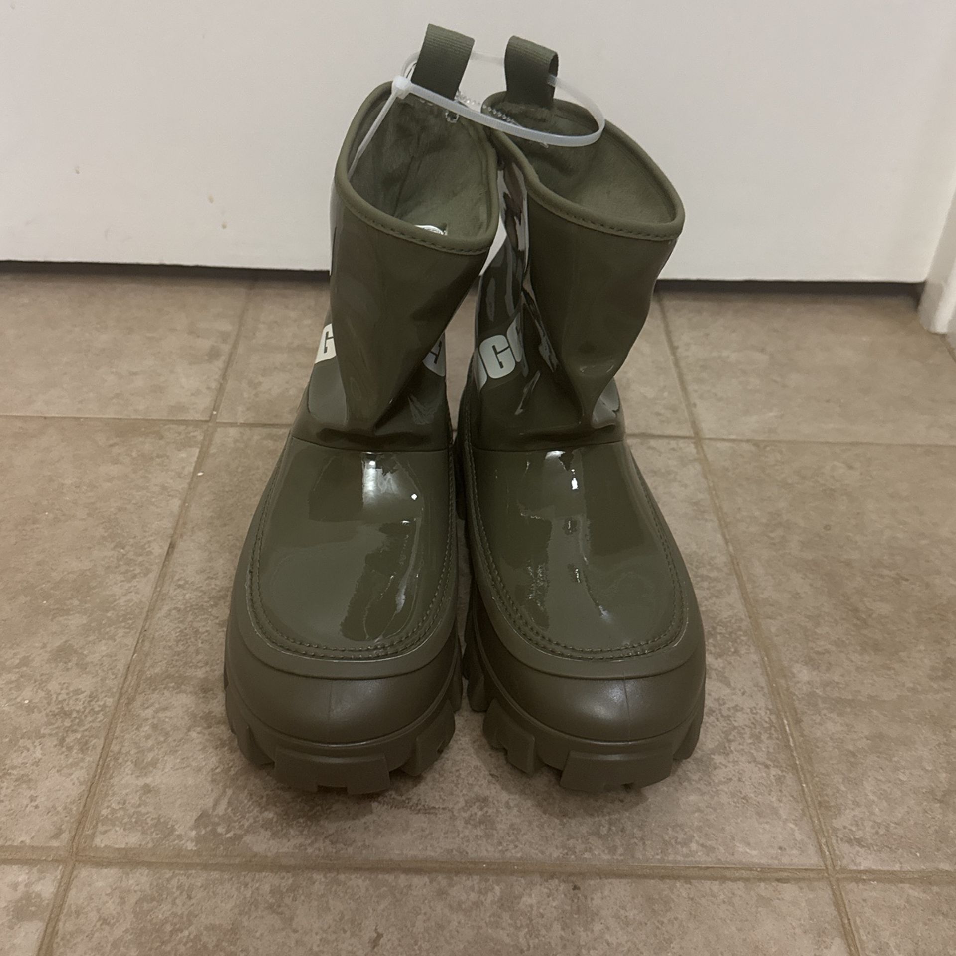 Rain boot from UGG® Water-repellent synthetic upper Pull-on fit with rear pull tab Textile lining Lightly cushioned footbed TPE outsole 3-3/4" heel height
