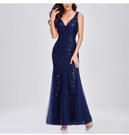 Women's Glitter Sequin Chiffon Dress Elegant V-Neck Bodycon Mermaid Maxi Evening Long Dresses Prom Party Formal Gowns Size large