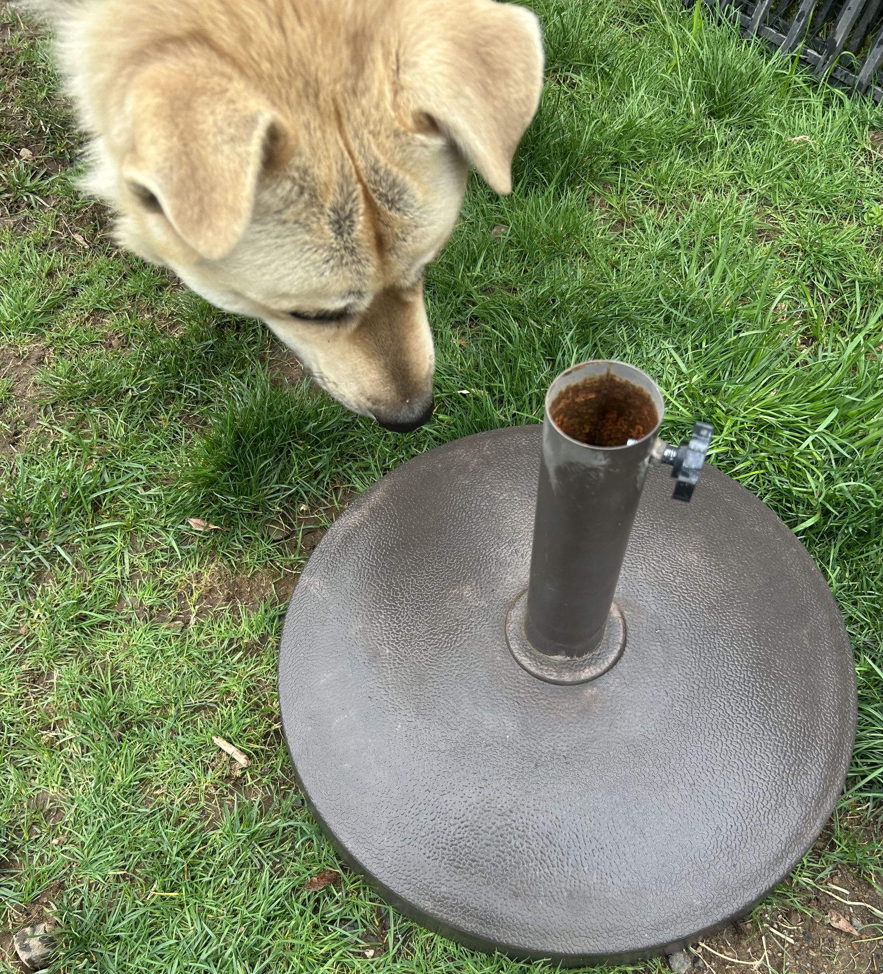 Heavy umbrella base, keeps your patio umbrella super stable. Dark brown color, has a knob to secure the umbrella pole. Great for outdoor use, like on your deck or by the pool. Don’t mind my photo bomber Niko just checking for specs 🫢 furball approved 😊 1’ft6” wide 11”pole Pick up in Brush Prairie Cash/Venmo FCFS No holds unless you pay in advance If it doesn’t say sold, it’s still available. I won’t reply if asked.