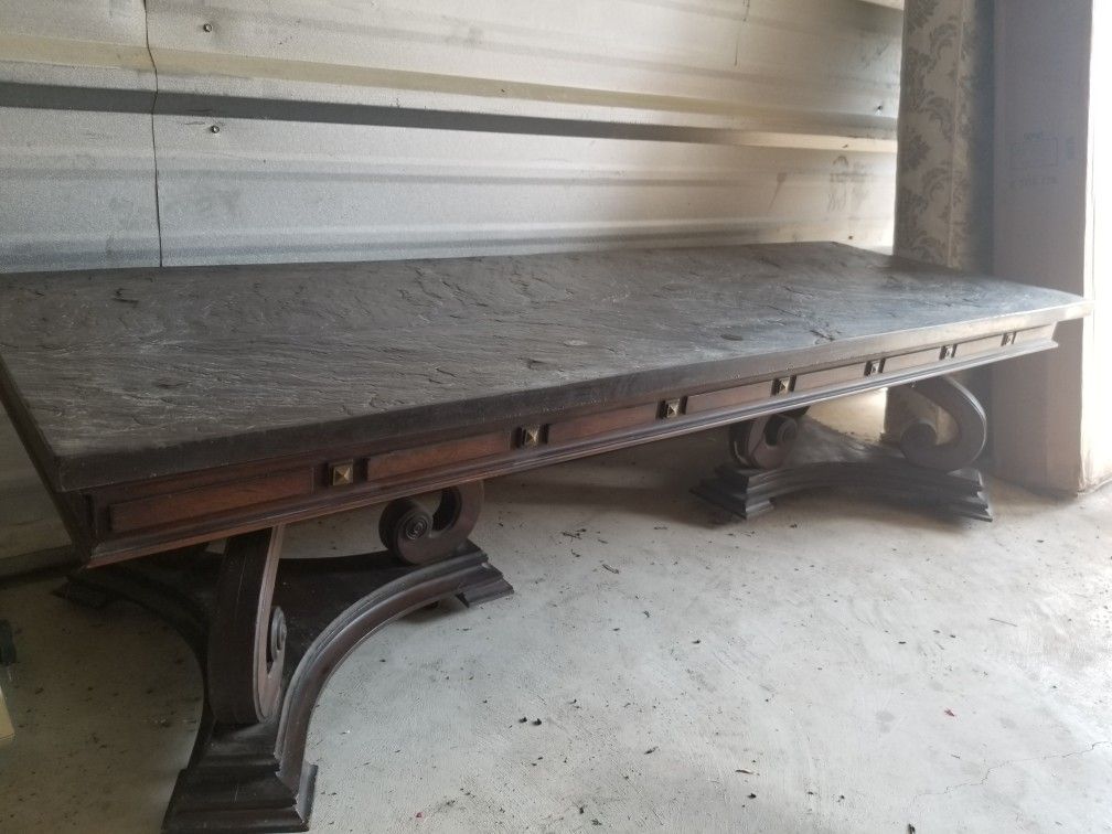 Coffee Table with black stone top and decorative solid wood bottom