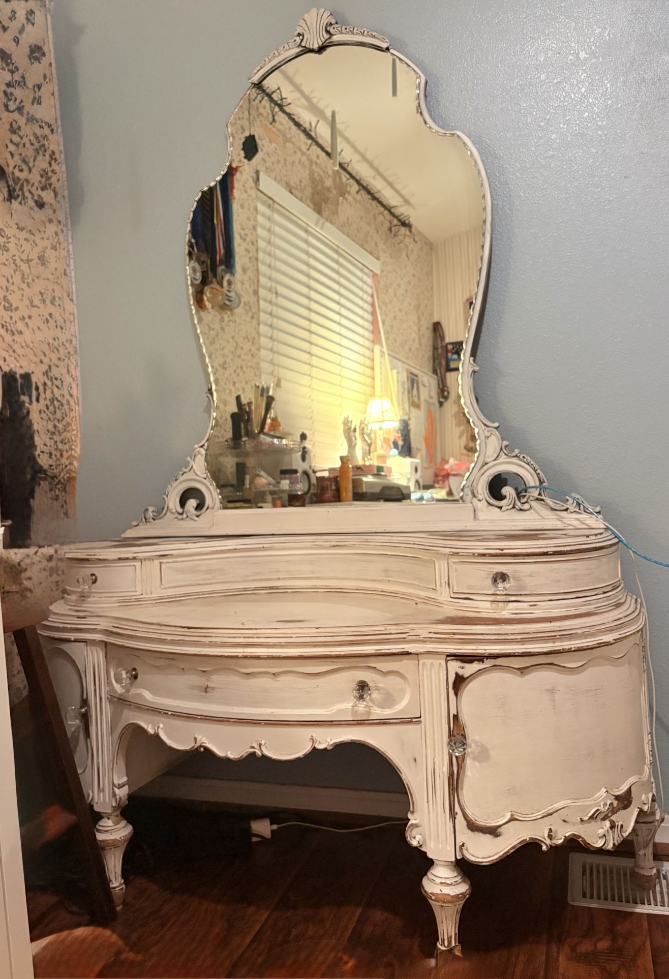 Selling A beautiful makeup/dresser, antique furniture, it’s in great condition! The mirror is beautiful and perfect! It’s 6 feet tall 4‘2“ wide depth is 1‘7“ perfect for any home / bedroom