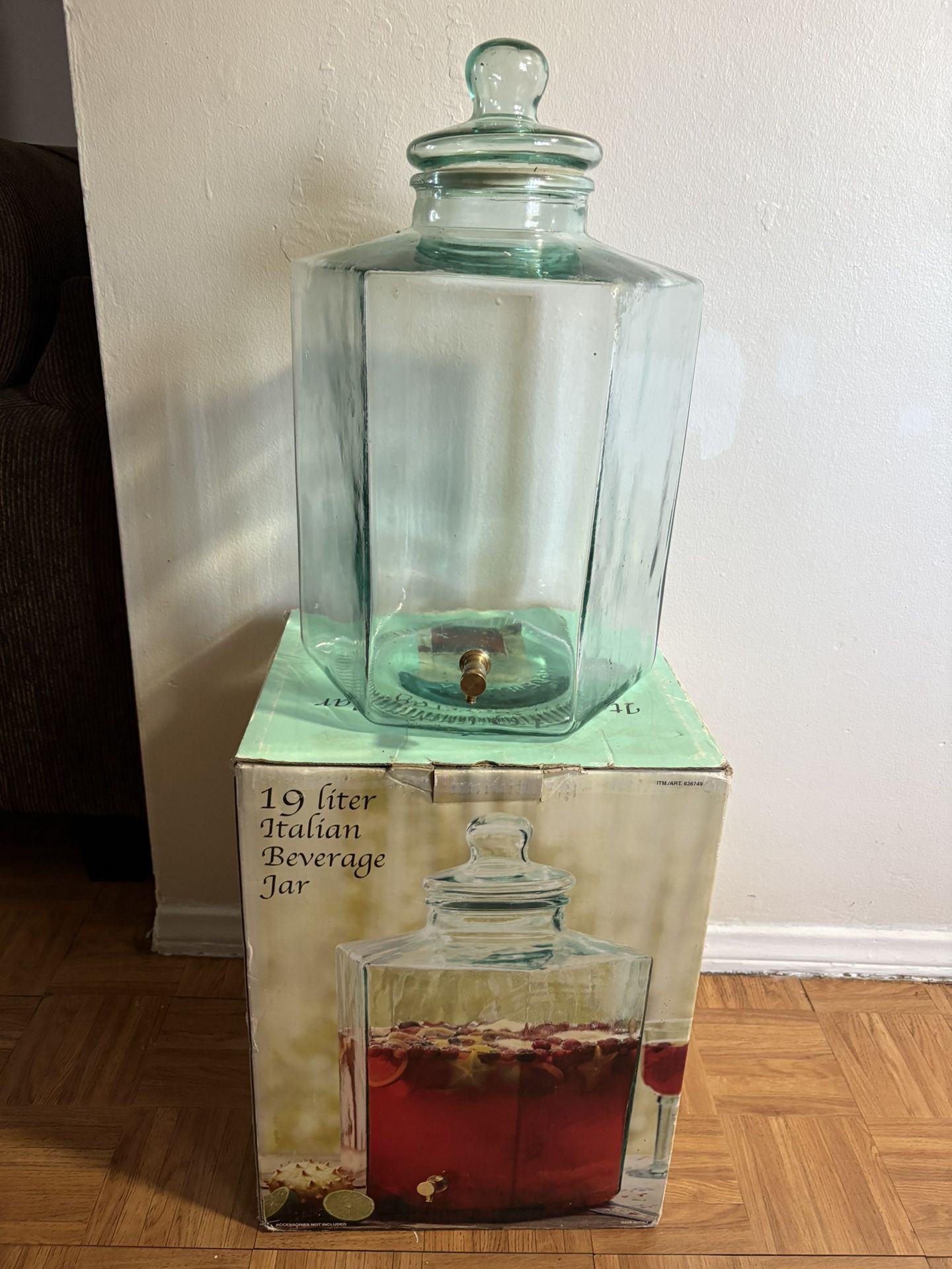 19 liters 5 (gallons) Italian beverage jar, open box. 40 OBO