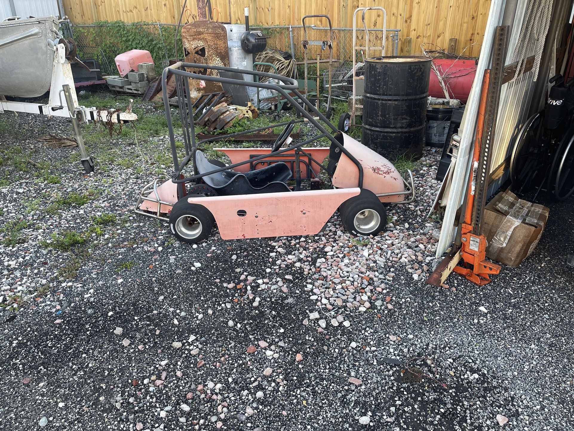 Race track go kart well used , Fram still in good condition just taking up space even willing to trade but it’s got to be something fun and it comes with 2 stands for the kart