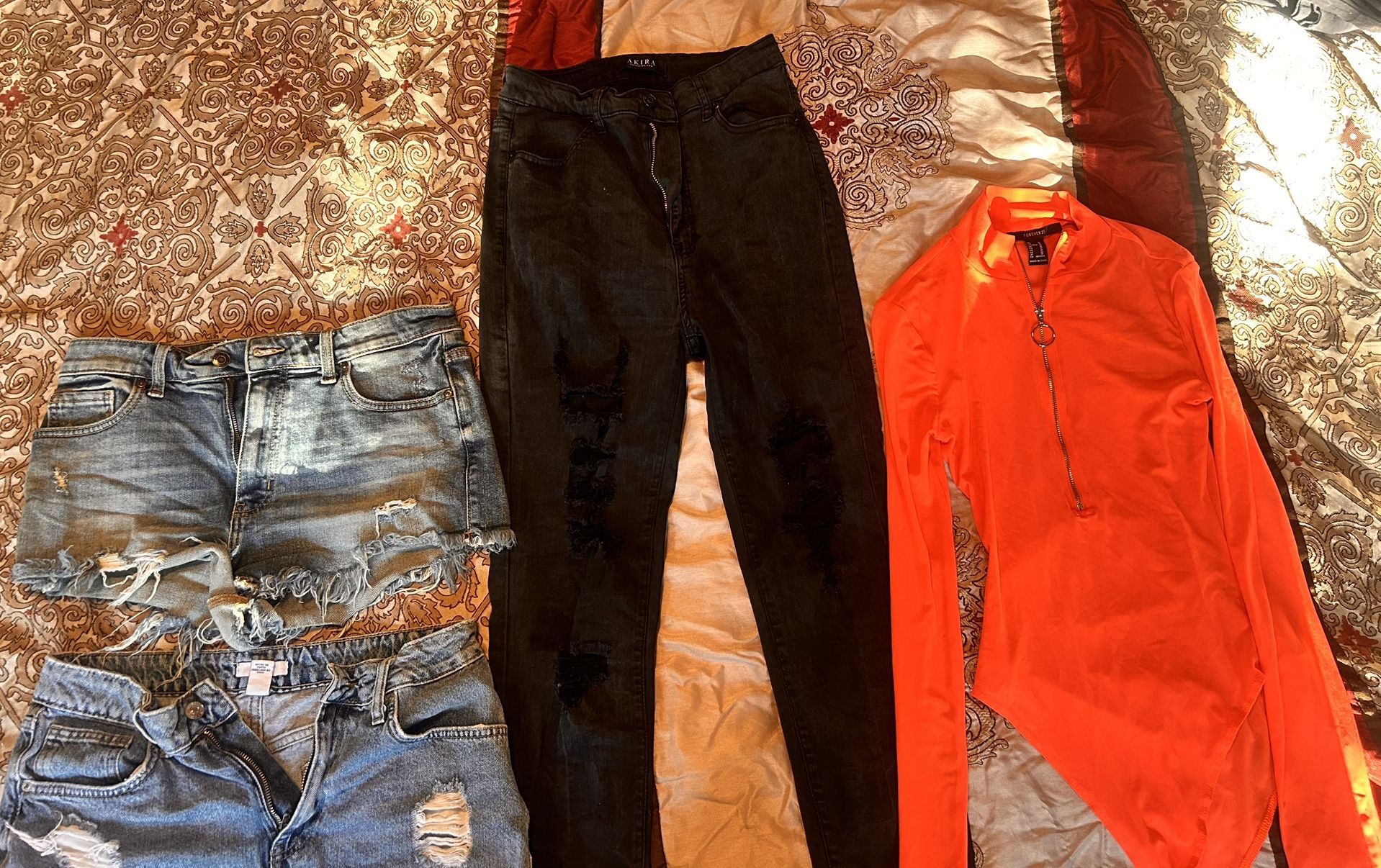 π₯ Trendy 4-Piece Clothing Bundle - Size M π₯ Bundle includes: Forever 21 Neon Orange Bodysuit (M) β Bold and eye-catching with a front zipper. Perfect for festivals or nights out! Akira Black Distressed Skinny Jeans (W31 / Size 15) β Stretchy and stylish with ripped detailing. Forever 21 Distressed Denim Shorts size 28 Oasis Distressed denim shorts size medium π₯ Gently used. All pieces in great condition.