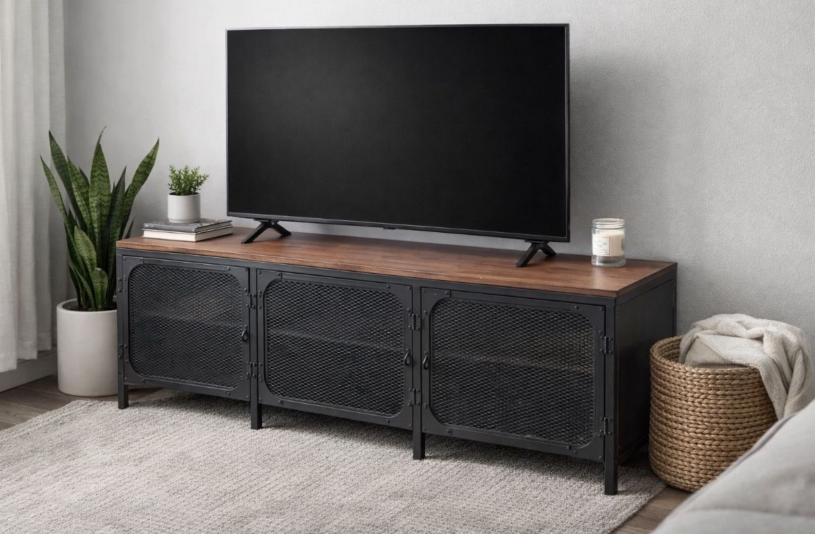 YES, IT IS AVAILABLE. I have many more furniture pieces available in my Marketplace store - feel free to check my profile for bundle discounts. Modern industrial TV stand / media console with a warm wood top and black metal frame. Lightweight, sturdy, and clean-lined - perfect for apartments, condos, or Airbnb setups. Mesh-front doors provide great storage while keeping a modern, airy look. Works great as: • TV stand • Media console • Storage cabinet • Airbnb / rental furniture 59x14.5 21 heigth Works great as: • TV stand • Media console • Storage cabinet • Airbnb / rental furniture 59x14.5 21 heigth Modern TV console... Condition: Very good Style: Modern / Industrial Color: Wood top with black metal Price: $220 FREE curbside DELIVERY (depending on distance) or extra $20 to $40 for long distances. Item can be reserved with advance payment. Check my Marketplace history for reliable, smooth transactions.