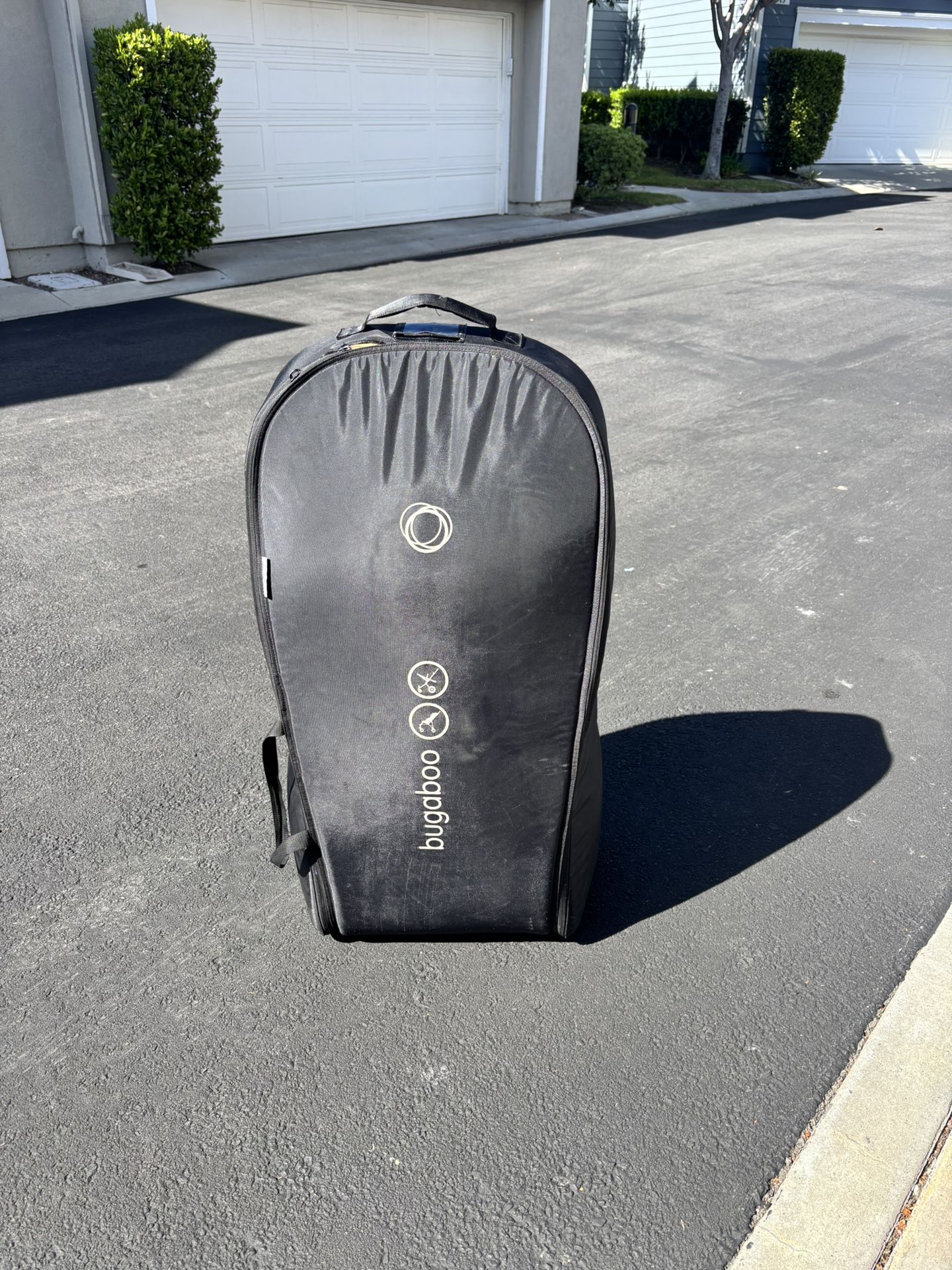 Stroller travel transport bag, structurally intact and functional but there is a small tear and missing 1 zipper pull as seen in photos. Priced accordingly. Fits Fox and smaller models.