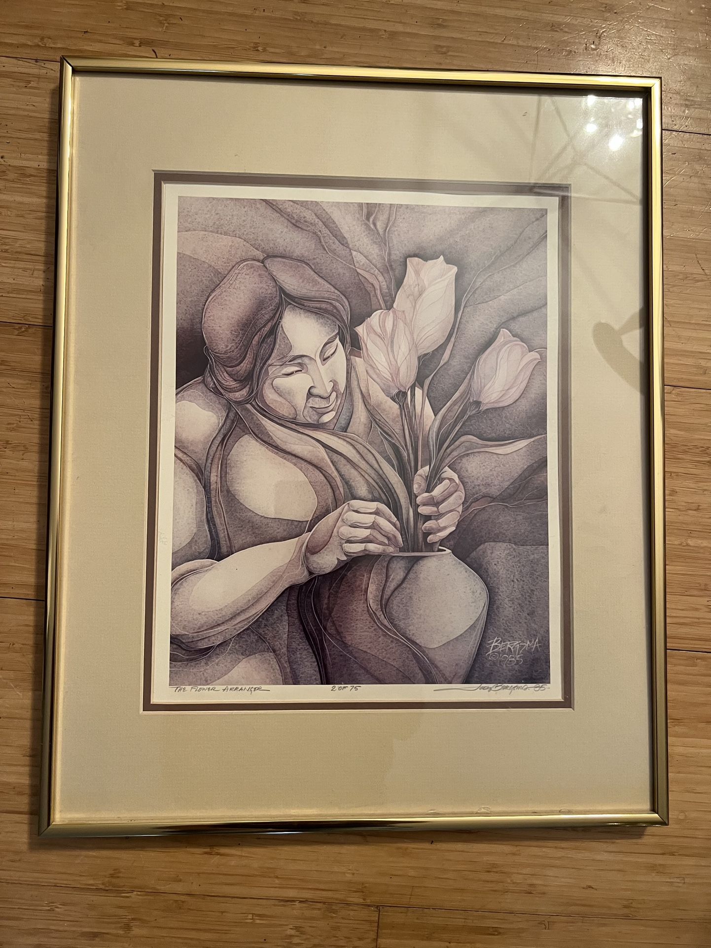 Gorgeous Professionally Framed Authenticated Jody Bergsma Art Woman Flowers