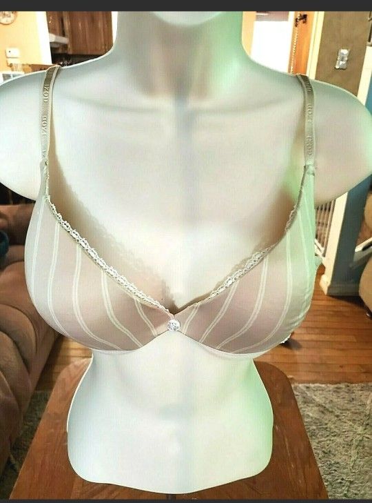IZOD Bra Tan & White Stripped 90% Polyester & 10% Spandex, Lace 38C