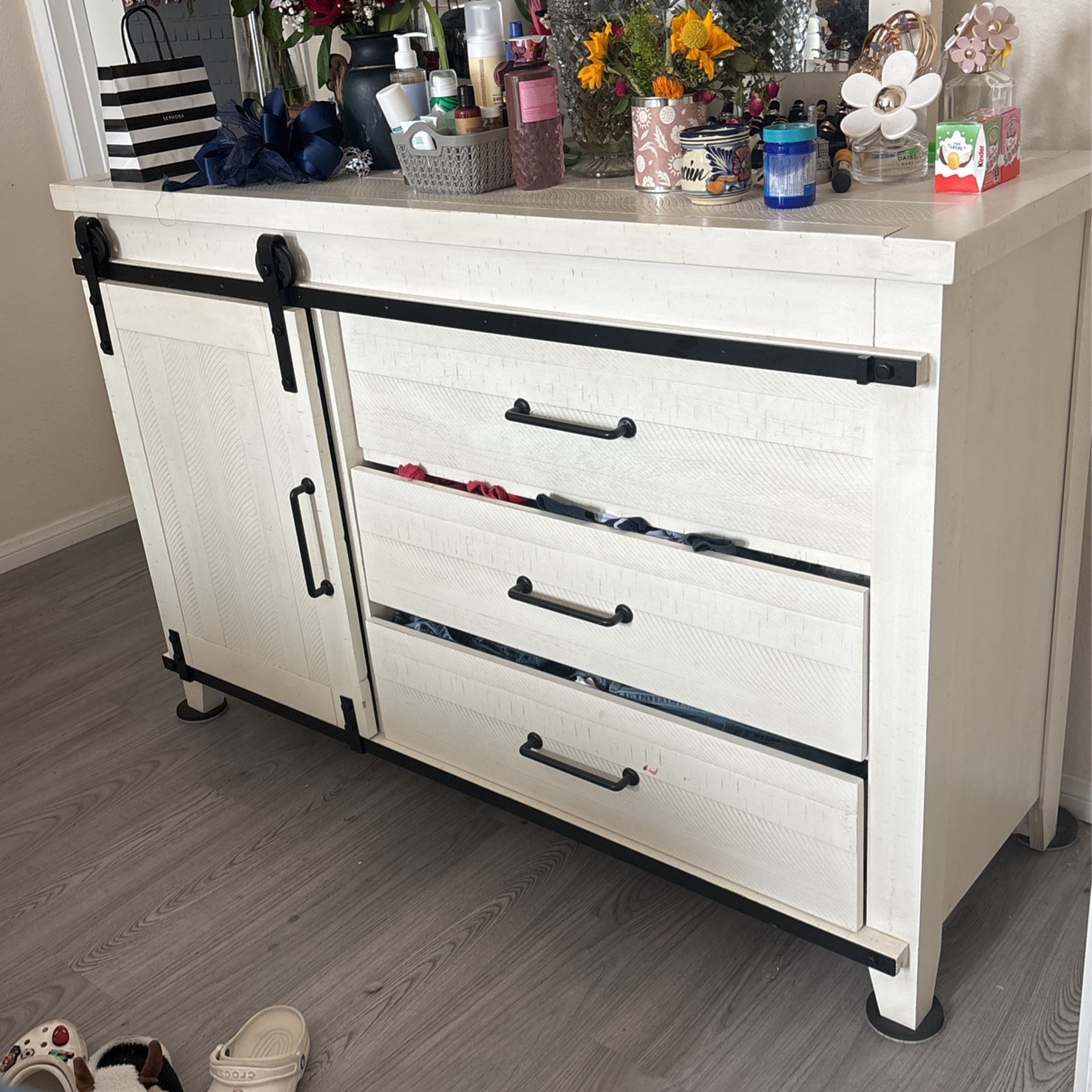 Drawer dresser In great condition Three dresser cabinets Slide door with more storage Has a mirror included