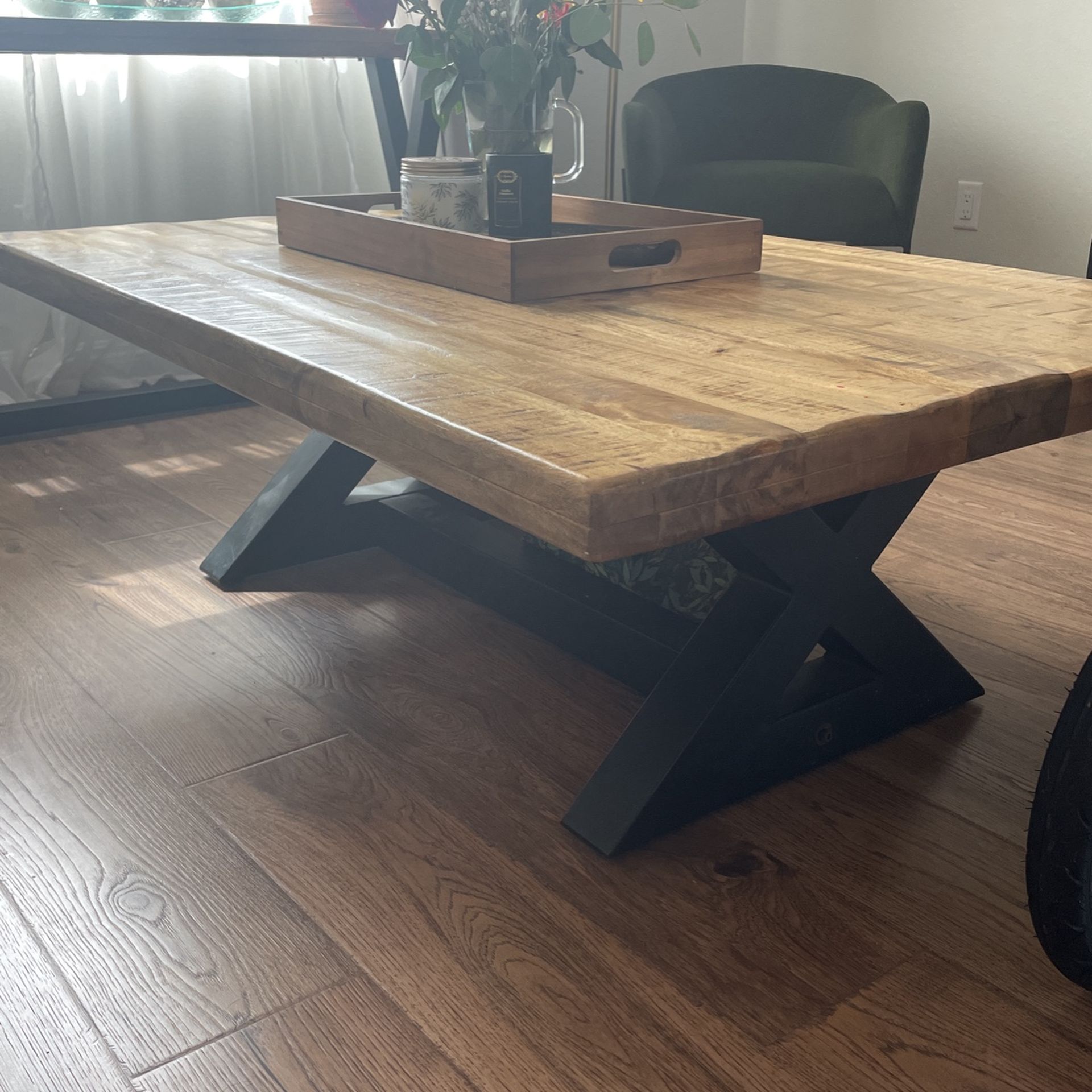 Solid mango wood table. Measures L 54” x W 36” x Tall 18”