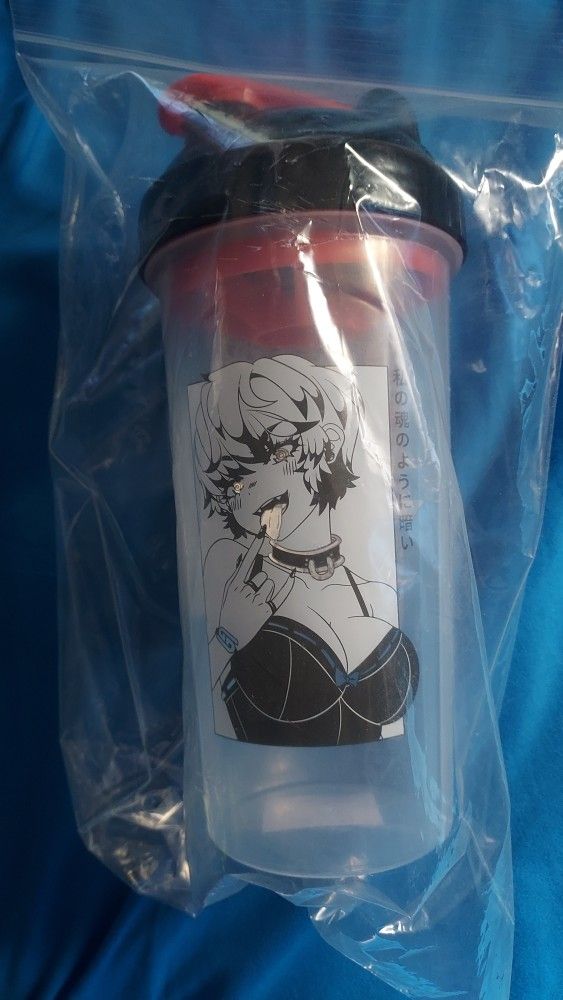 Collectible waifu Cup with sticker from Gamersupps goth Not dishwasher safe. Hand wash only.