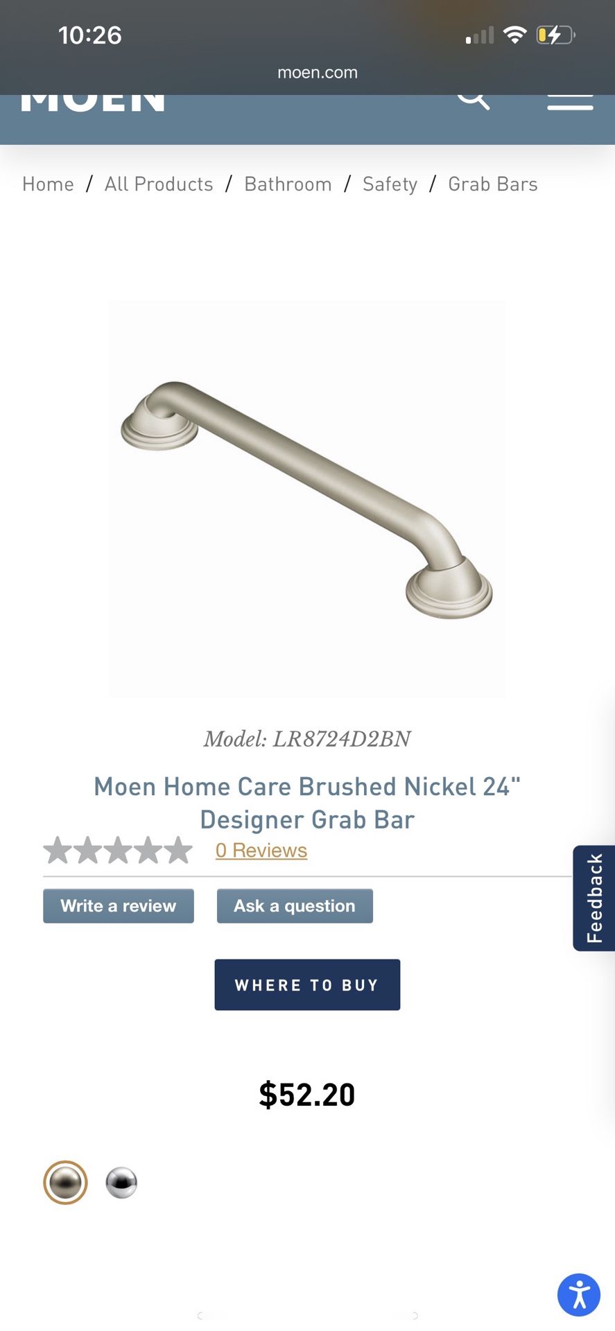 Brand new unopened Moen grab bars. (1) 24 inch r (2) 16 inch Selling for $105 obo. Valued at $113.20 Please note that there might be an additional charge for shipping because of weight