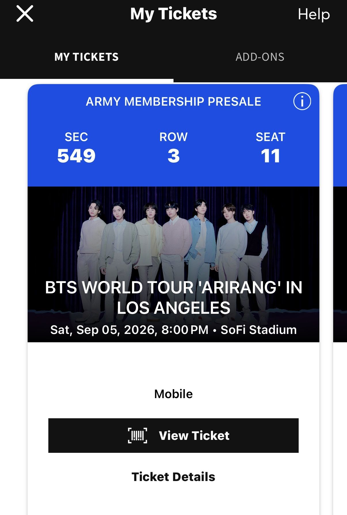 4x BTS Concert WORLD TOUR 'ARIRANG' IN LOS ANGELES Saturday, Sep 05, 2026, 8:00 PM SoFi Stadium Tickets